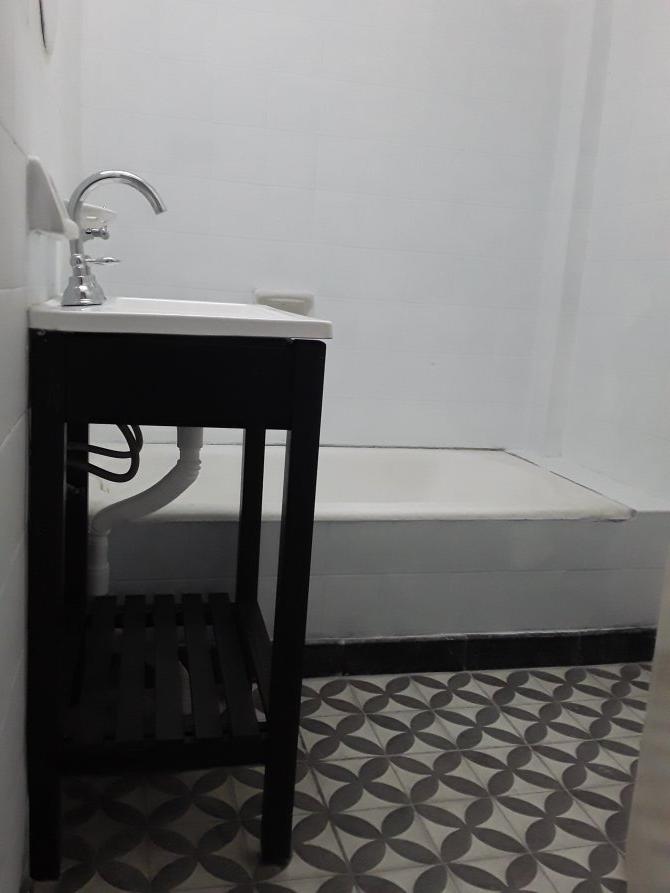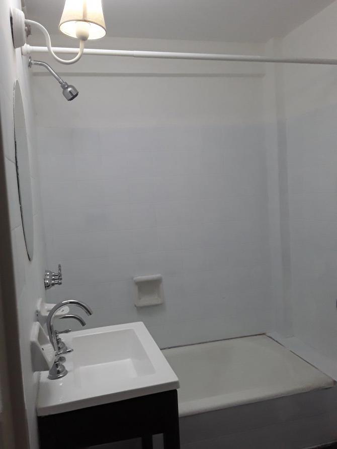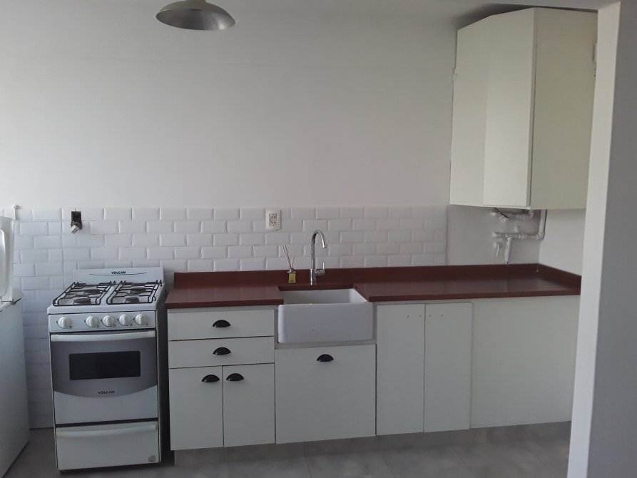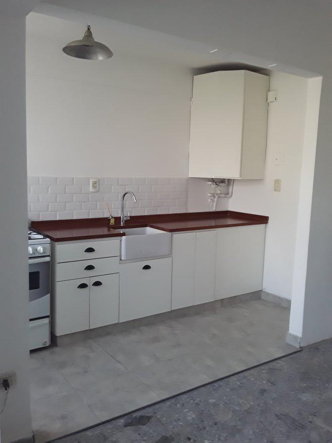Departamento en planta baja de dos ambientes, compuesto por comedor integrado a la cocina con muebles altos y bajo mesada, dormitorio, baño con bañera y balcon.