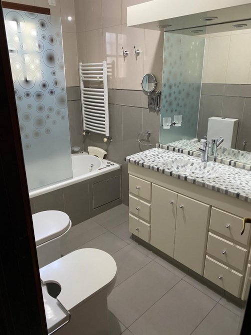 En planta alta la vivienda ofrece tres dormitorios con ventilador de techo y aire acondicionado mas con baño completo biblioteca y vestidor.