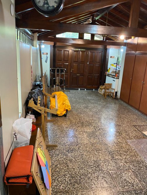 La vivienda cuenta en planta baja con recibidor, Living, cocina comedor amueblada, 2 dormitorios y un baño completo con hidromasaje, a continuacion encontramos el escritorio o habitacion de servicio, quincho con baño y cocina y cuarto de enseres.