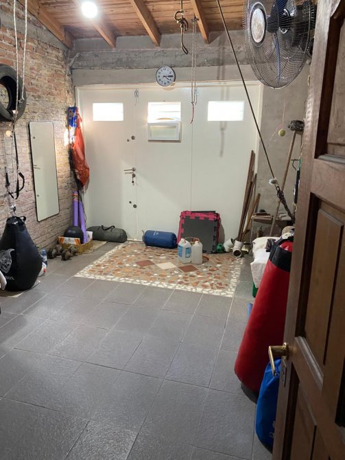 La propiedad cuenta con garage para un vehiculo, Al ser un lote tan ancho da la posibilidad de entrada de segundo auto donde se encuentra actualmente un semicubierto con con baño auxiliar, parrilla y patio.