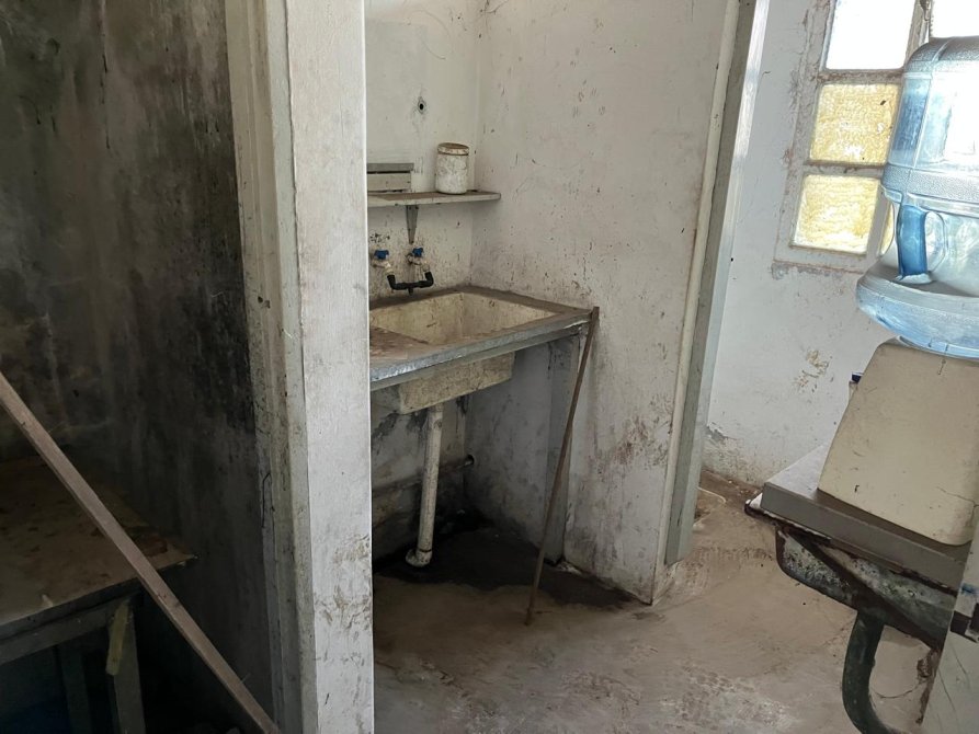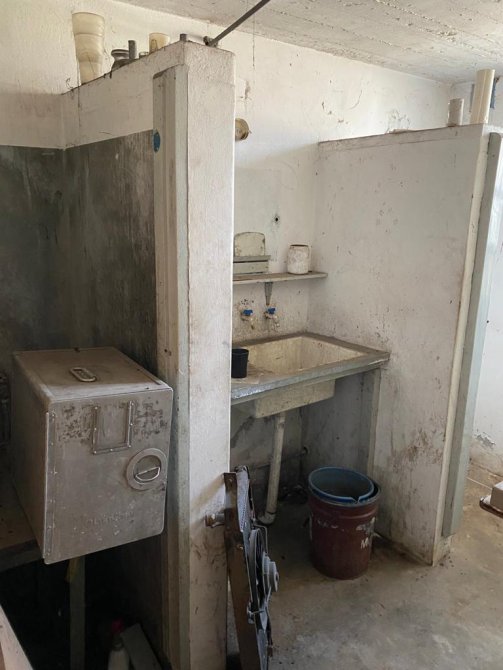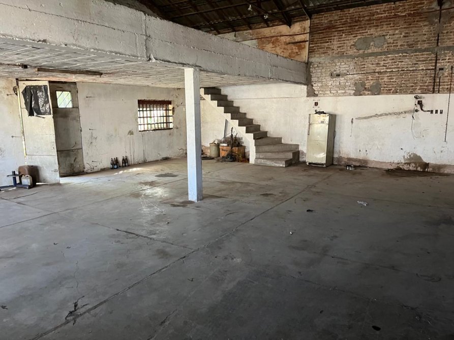 El galpon es de techo de chapa doble altura, piso de cemento alisado