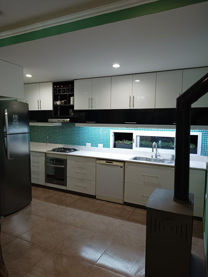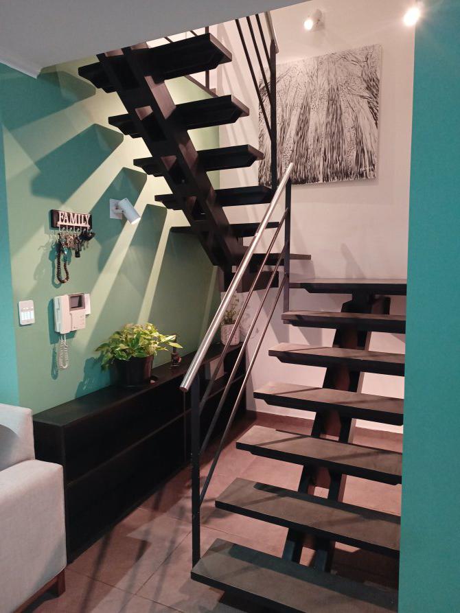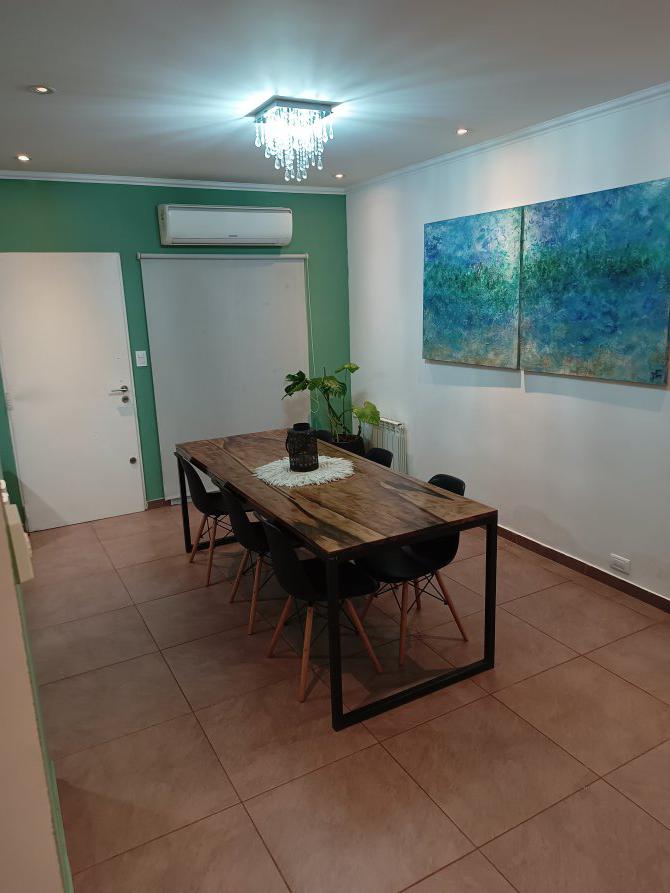 En planta baja living cocina comedor con muebles alto y bajo mesada con silestone. Salamandra estilo tromen , toilette de recepcion y dormitorio, hoy adaptado a escritorio.