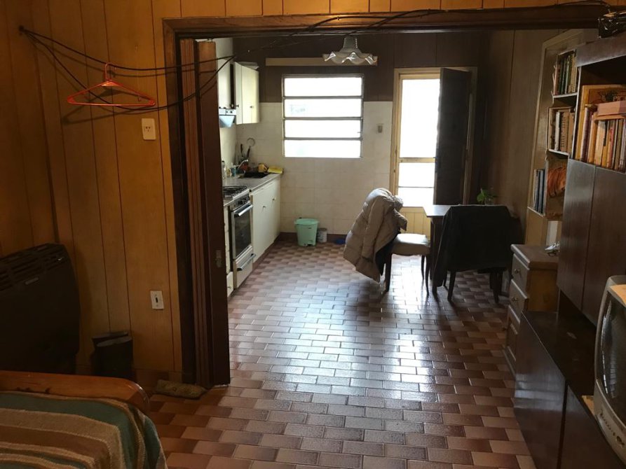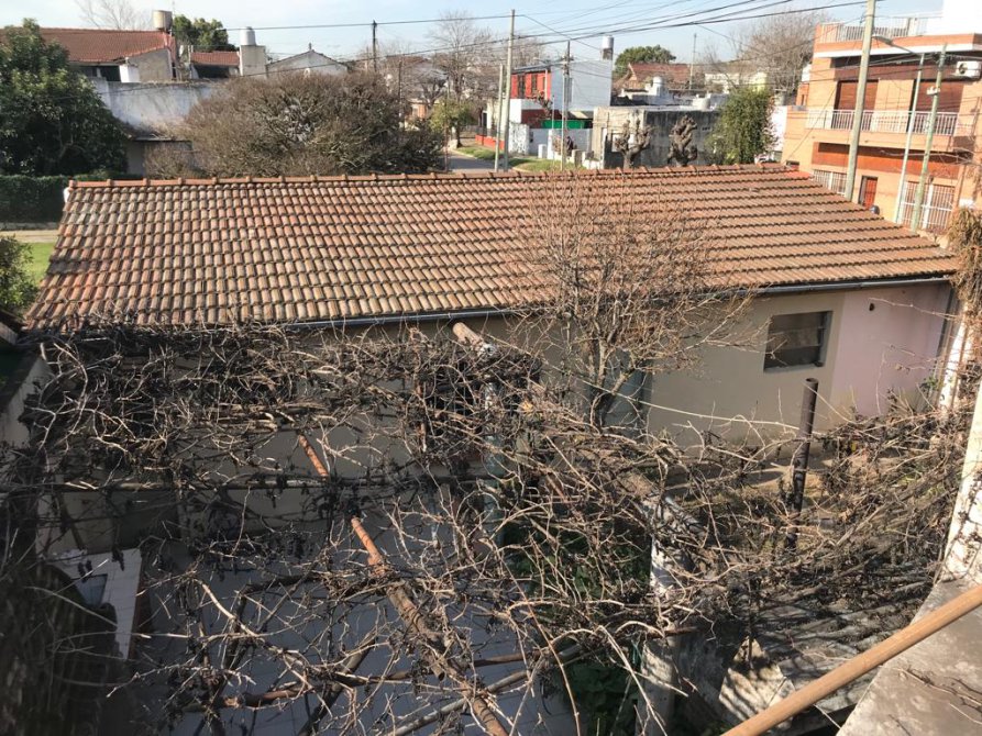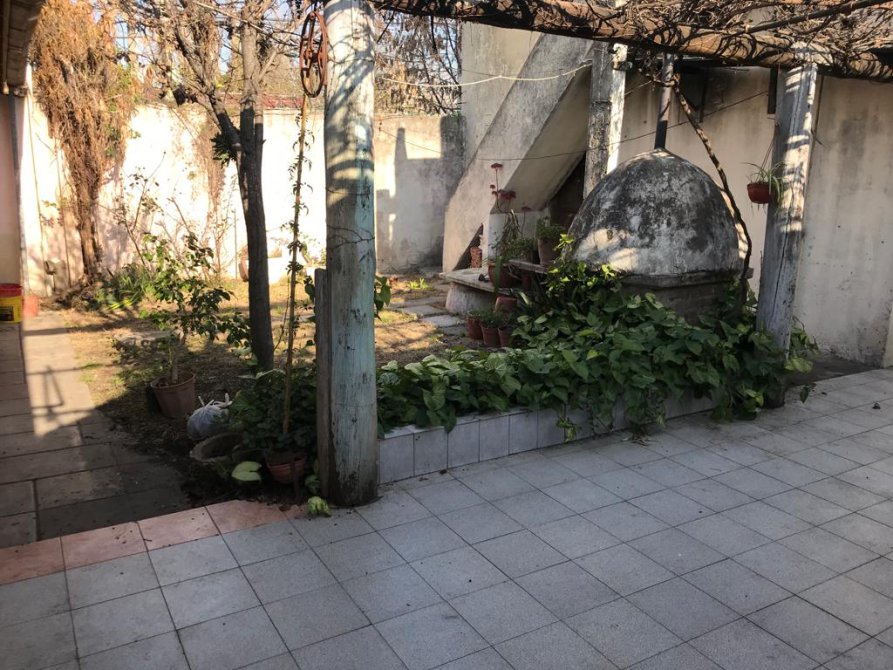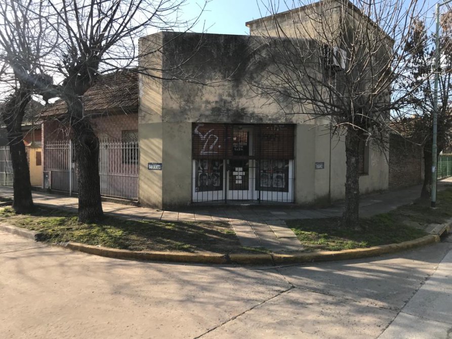 Casa de 60 años de 3 ambientes en esquina con local, (actualmente en alquiler) con porche de entrada living comedor 2 dormitorios cocina amueblada y baño. cochera con un galpon patio y terraza con cuarto de enseres, loza apta para edificar