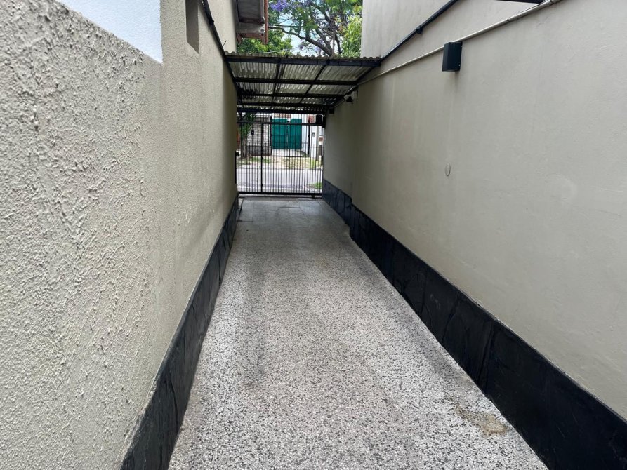 Casa con acceso por pasillo, con porton automatico con espacio para guardar 2 autos.