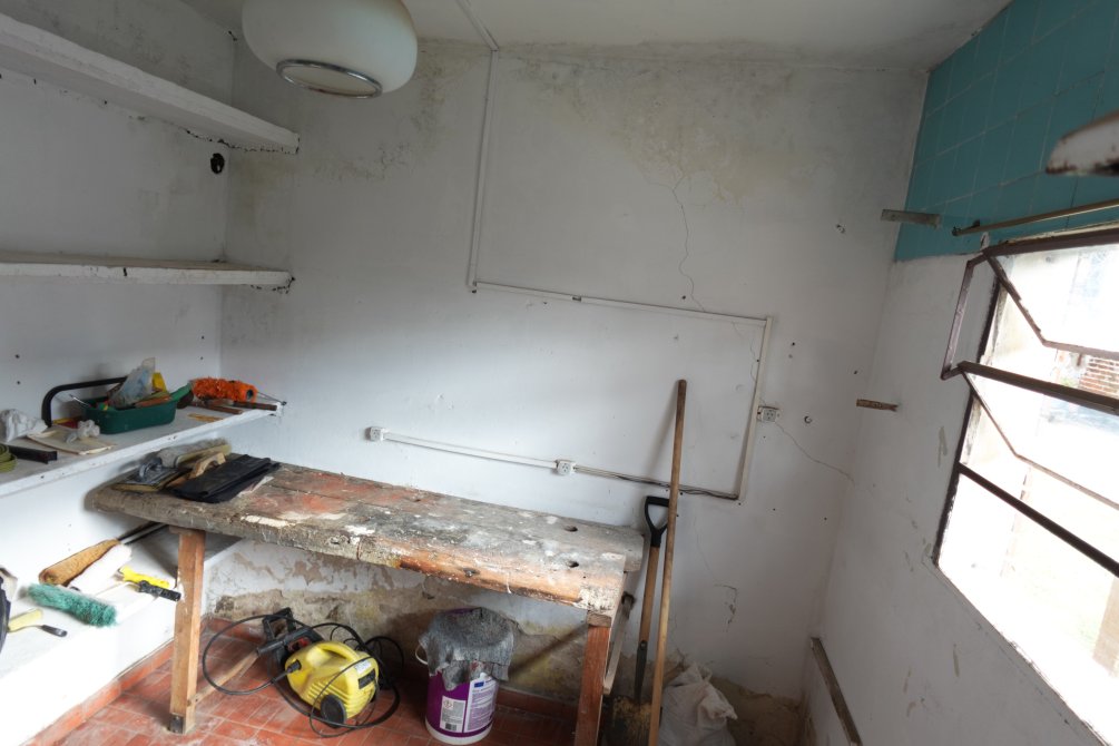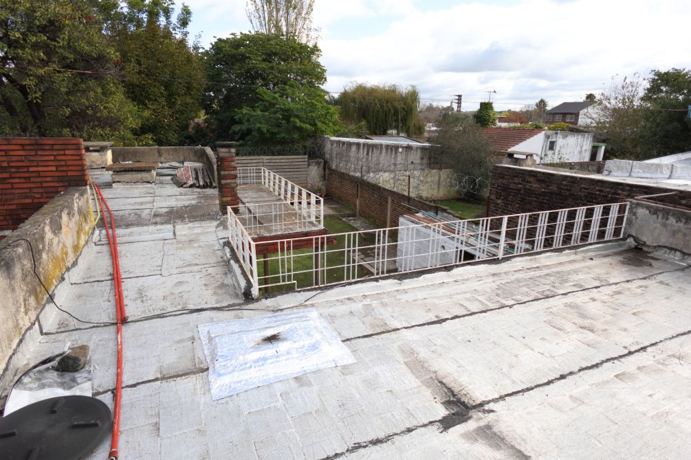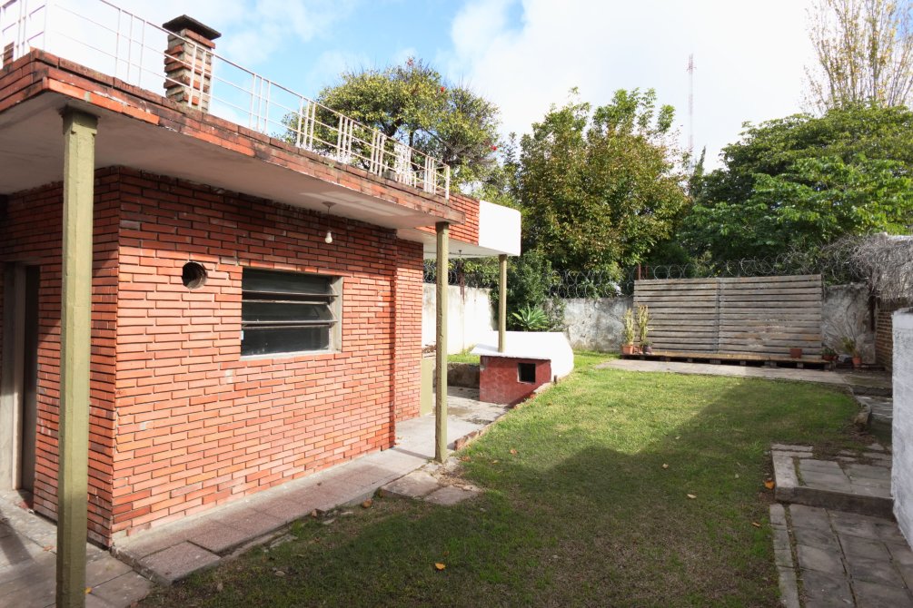 Al fondo del terreno, nos encontramos con el jardín, un cuartito guarda cosas y baño auxiliar; y una escalera para subir a la amplia terraza hecha de losa, preparada para edificar en planta alta.