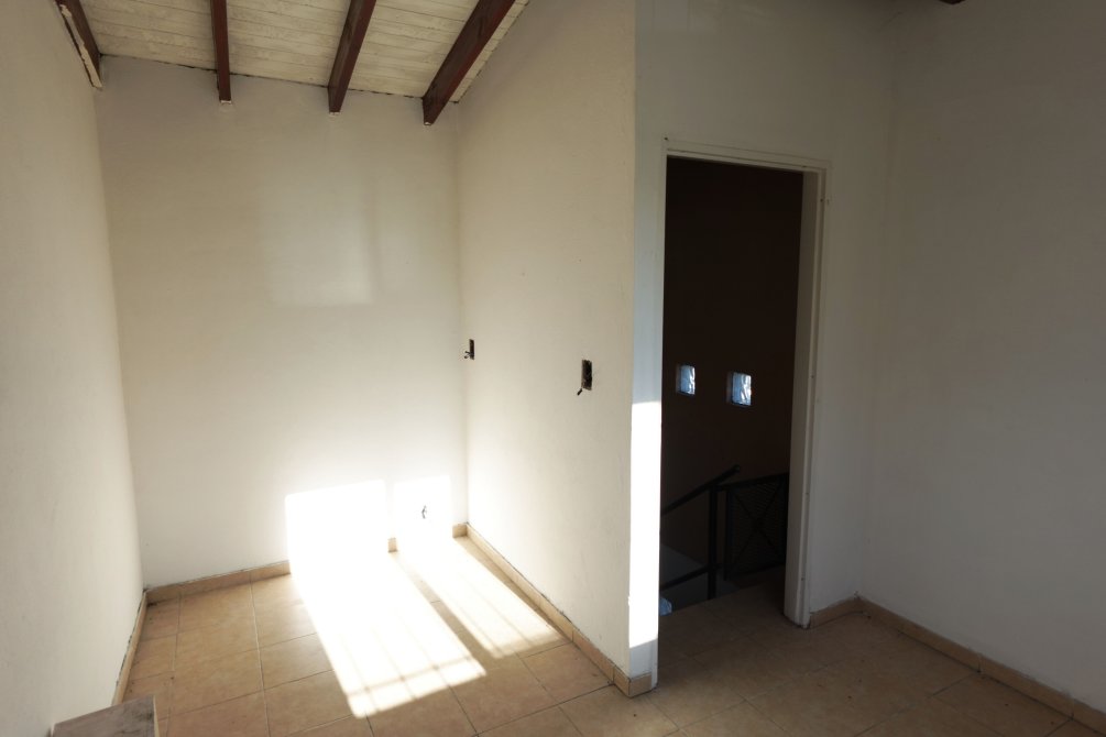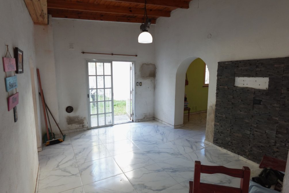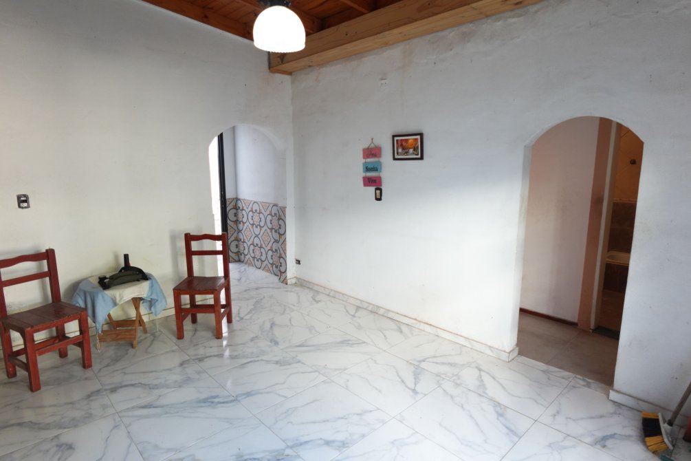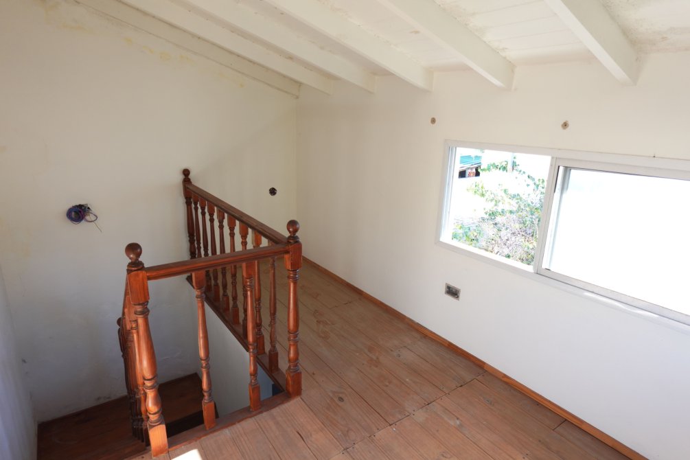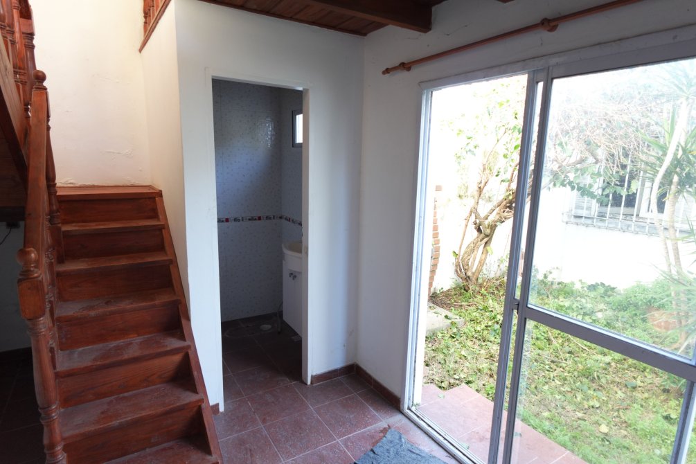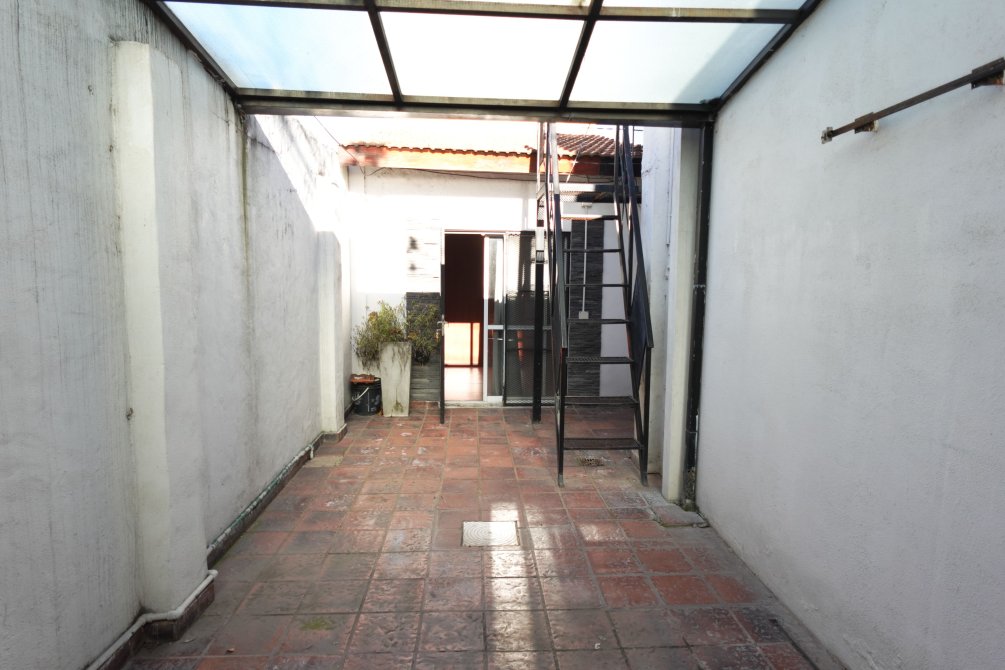 Ingresamos por un espacio compartido con el departamento que se encuentra al frente, hacía el living conectado a la cocina; por el lado privado de la casa nos encontramos con una habitación en planta baja y el baño completo con bañera; el segundo dormitorio se encuentra en planta alta por escalera.