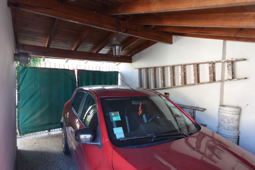 Ingresamos por el jardín delantero, que cuenta con una entrada para vehículo hacía la cochera semicubierta, teniendo lugar para dos vehículos.