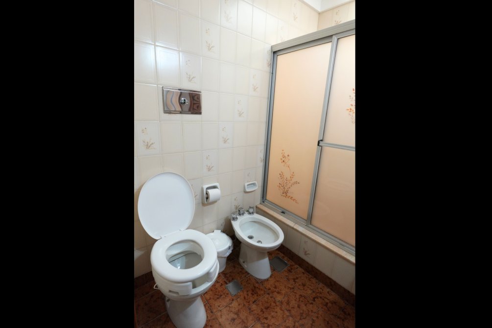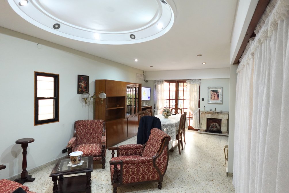 Al final del pasillo accedemos al baño completo y living comedor con detalles en el cielo raso de yeso y luces difusas; con ventanas al pasillo lateral, patio de aire y luz y a la galería del jardín trasero.
