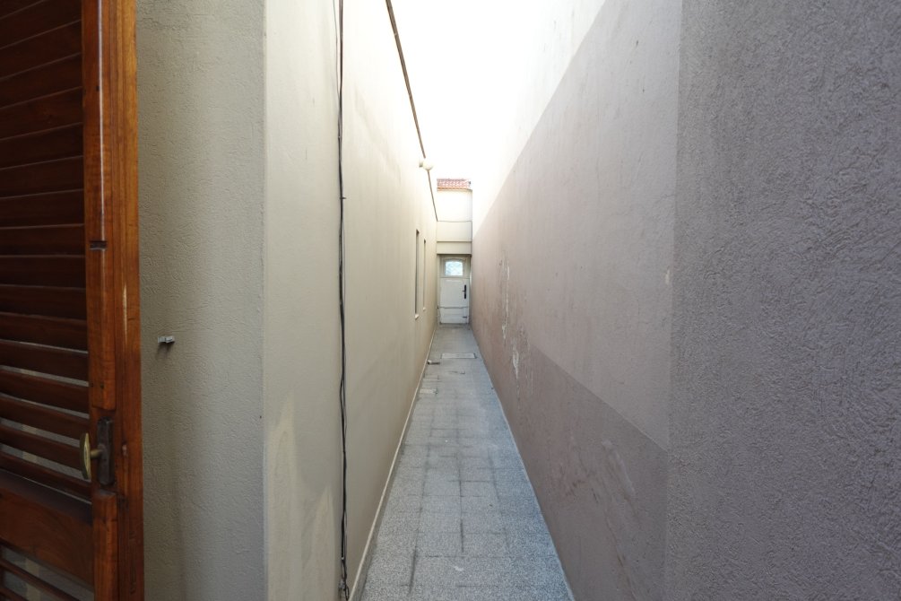 Ingresamos a la vivienda por un pasillo que nos conecta con los dos dormitorios, uno de ellos con un gran ventanal enrejado al frente y el otro con ventanal que da al patio de aire y luz interno; del otro lado del pasillo nos encontramos con la cochera cubierta para un vehículo.