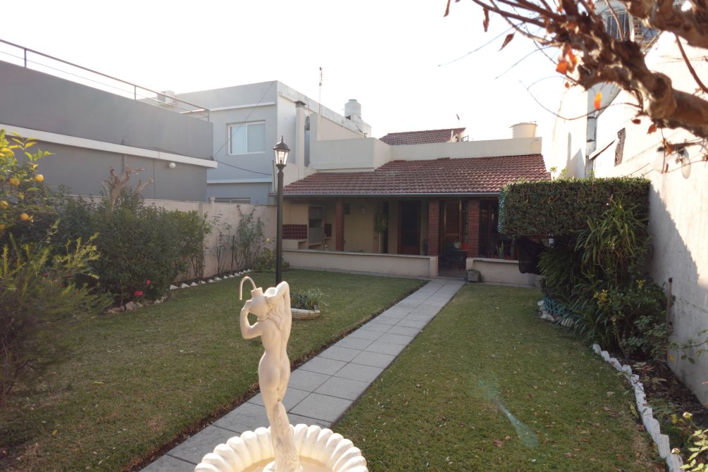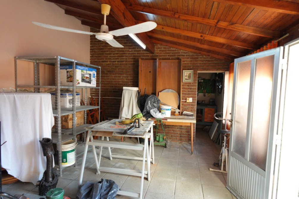 Saliendo hacía el jardín tenemos la galería cubierta, que cuenta con un baño con ducha auxiliar y una parrilla; jardín con amplio verde y un limonero que nos lleva hacía el quincho que se supo utilizar como taller, con conexiones de agua y gas.