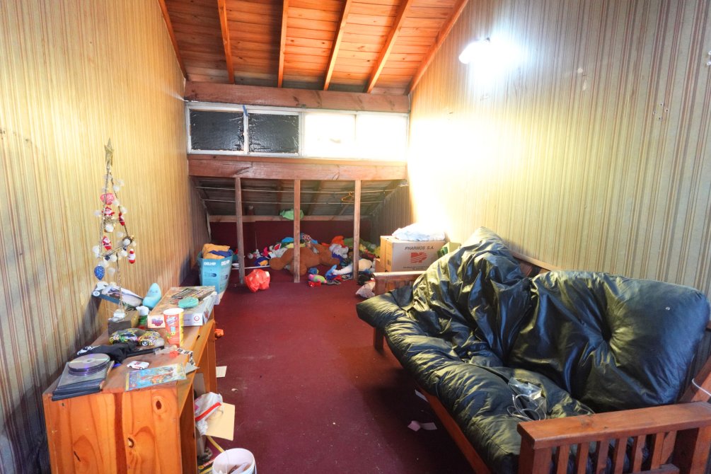 Pasando al living comedor, nos encontramos con el tercer dormitorio, la cocina con muebles alto y bajo mesada, y el baño completo con bañera. Desde el living accedemos por escalera al playroom en planta alta, que podría ser fácilmente un cuarto dormitorio, con un baño sin ducha.