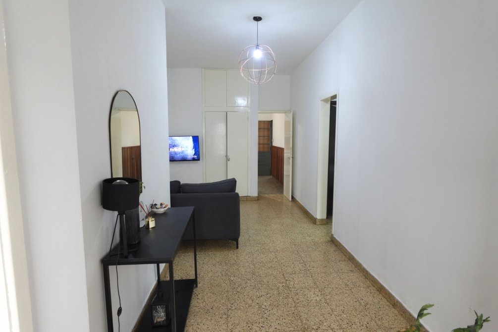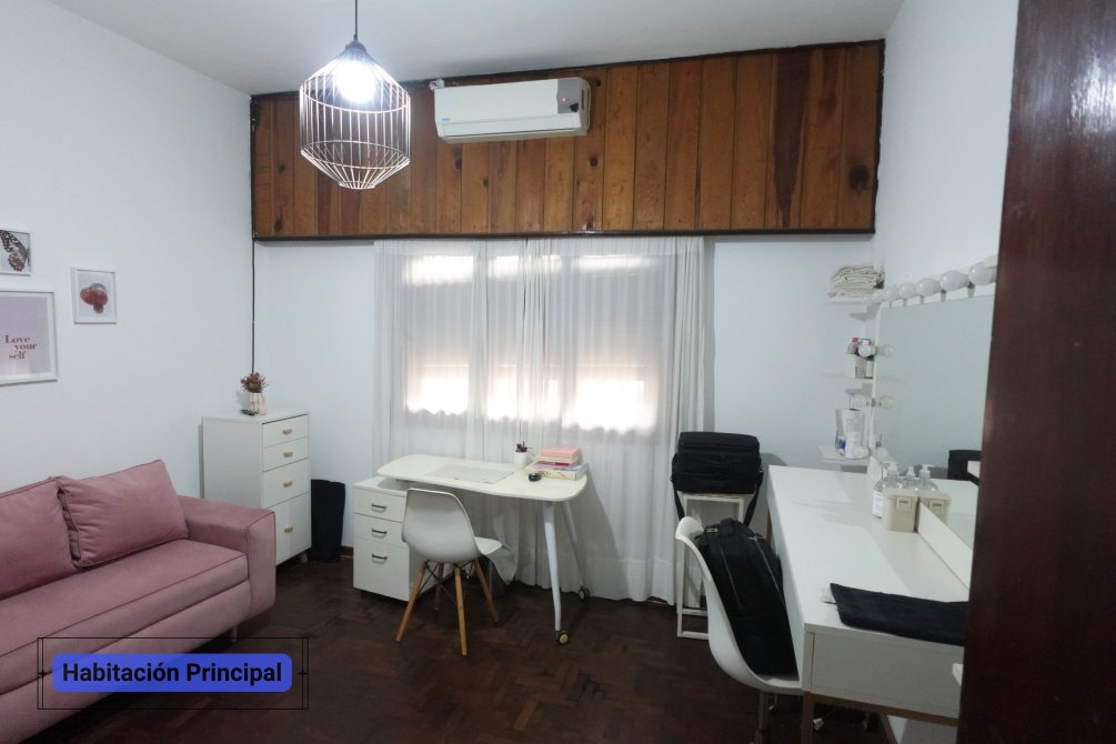 Desde el hall distribuidor de la parte privada de la casa, se accede a los dos dormitorios: el principal con vista al jardín del frente y el segundo al jardín de invierno, ambos con piso de parqué y ventanas enrejadas; y al baño completo con ducha.
