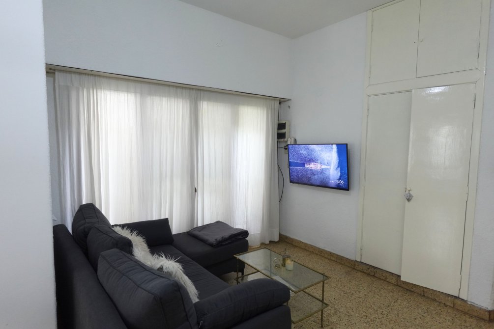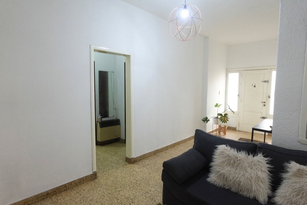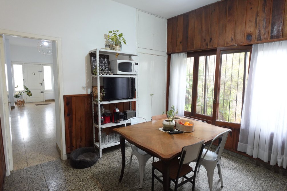 Ingresando por el living comedor, se puede acceder a la cochera cubierta para un vehículo grande, al hall distribuidor de la parte privada y a la cocina. Living con ventanas que miran al jardín del frente y al pasillo lateral.