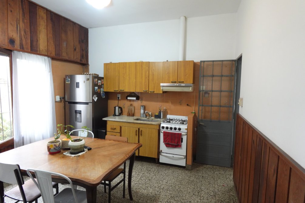 Siguiendo se encuentra la cocina con muebles alto y bajo mesada, y ventana de vidrio enrejada al pasillo lateral; con salida al jardín de invierno.
