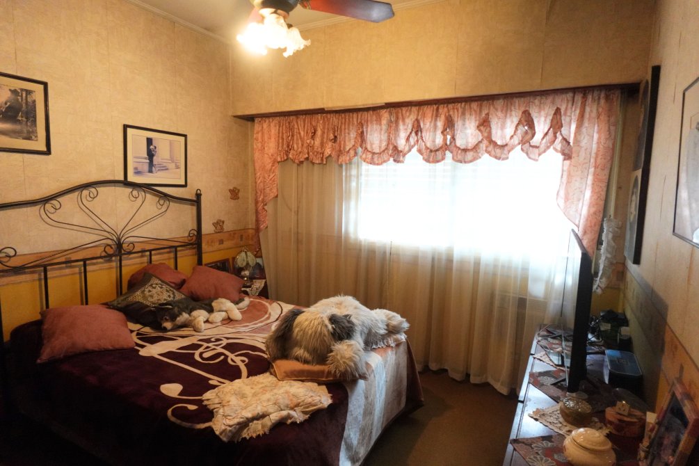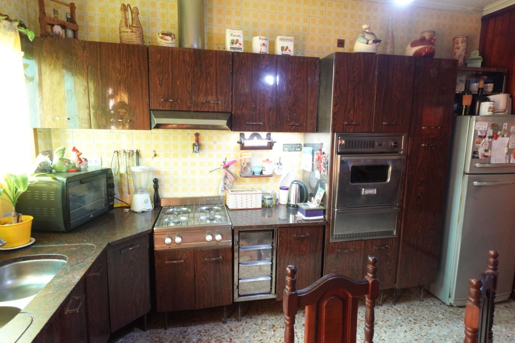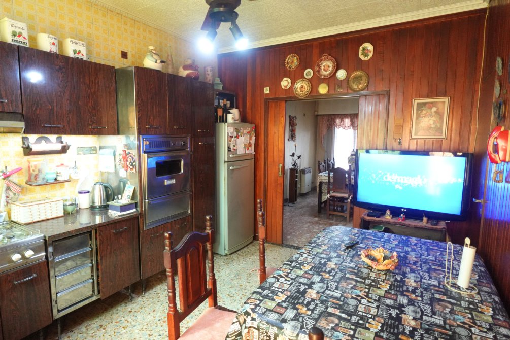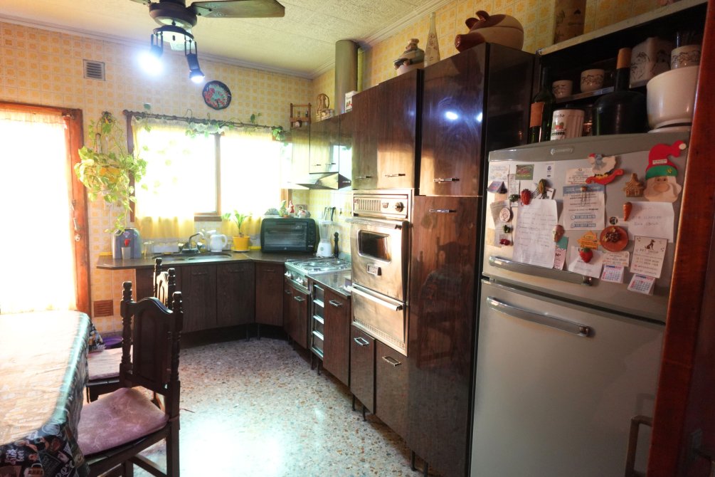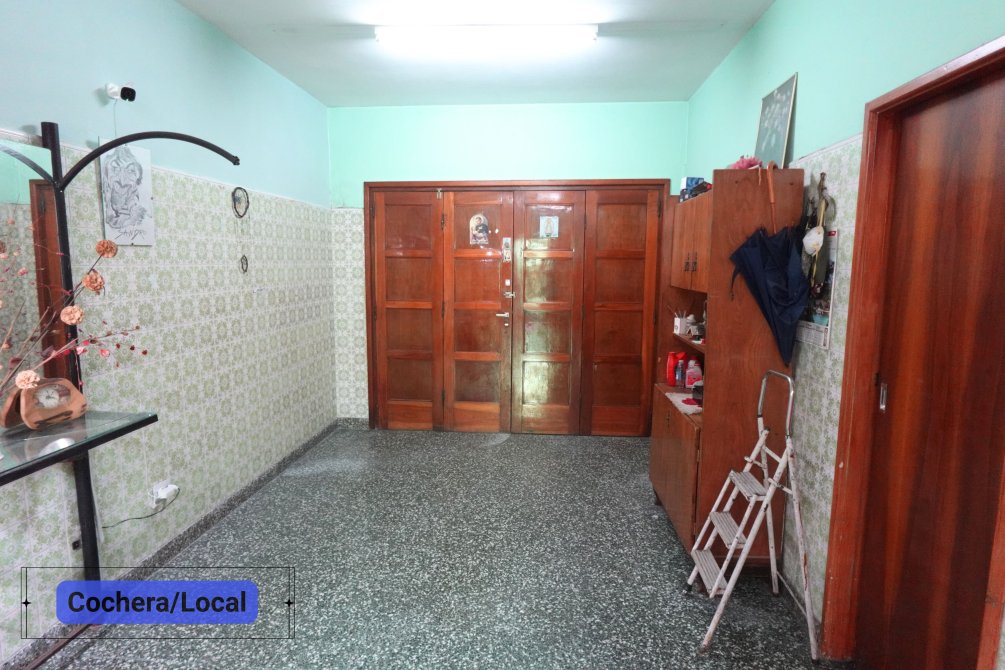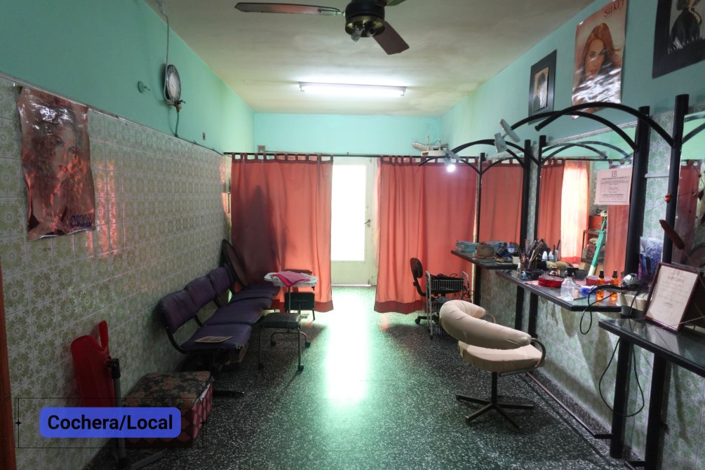 Siguiendo por el comedor diario se encuentra, dividido por una puerta plegadiza, la cocina con muebles alto y bajo mesada; espacios con una gran iluminación y ventilación cruzada. Desde el comedor accedemos también a la cochera cubierta para 2 vehículos, hoy funcionando como peluquería.