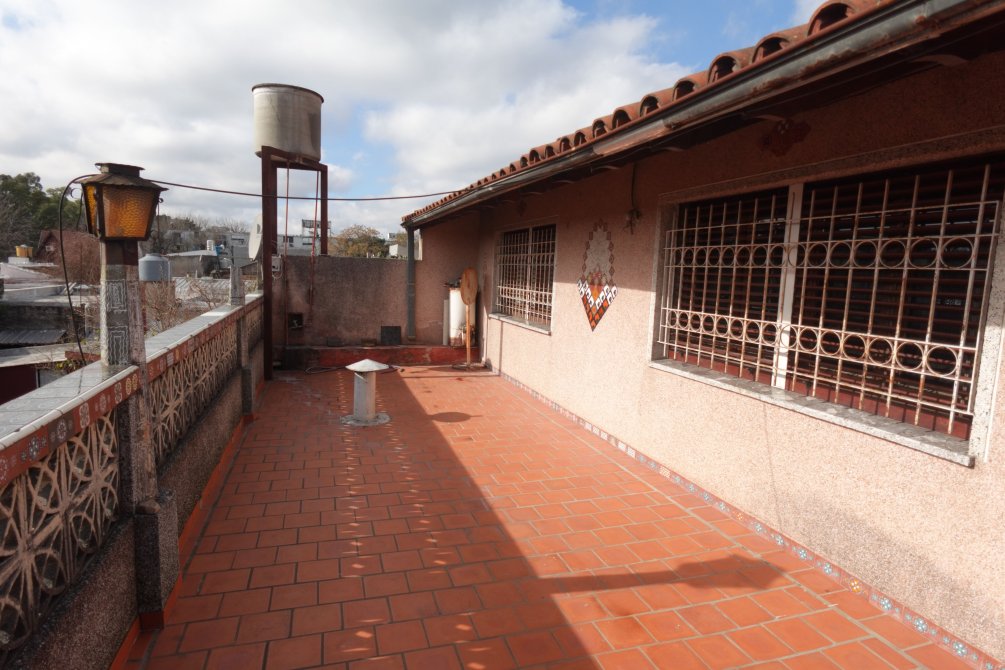 Saliendo al patio trasero nos encontramos con un quincho semicubierto con parrilla, un baño auxiliar, un lavadero, un galpón guardacosas y la escalera exterior que lleva al departamento de 2 ambientes.