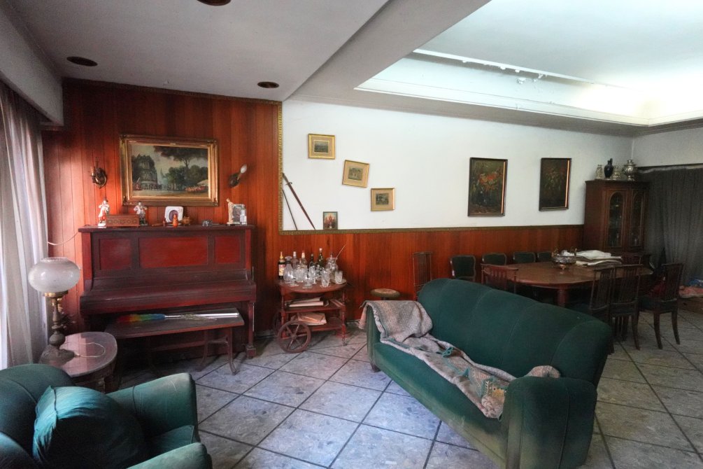 La vivienda actualmente cuenta en planta baja con living, jardín de invierno, cocina comedor, baño auxiliar, una habitación que puede ser un escritorio o un dormitorio chico, cochera para un vehículo y una escalera que lleva al sótano.