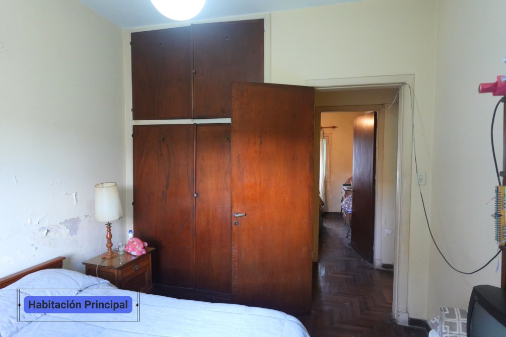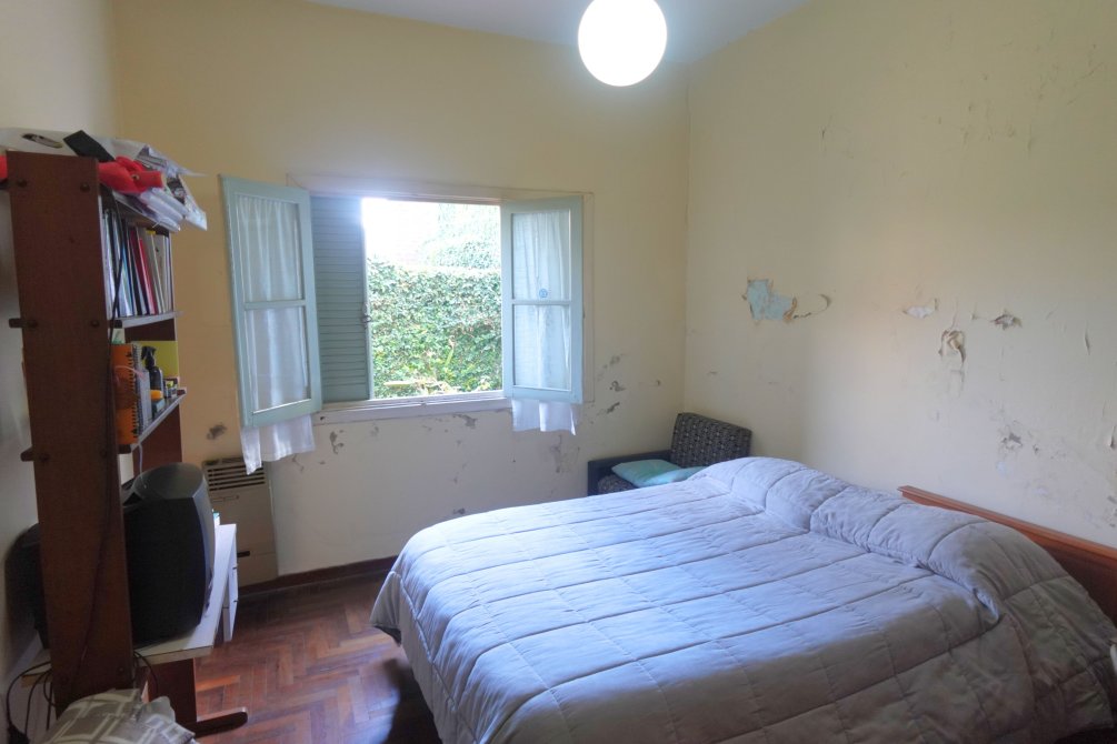 Hacía la parte derecha del living, se encuentran dos dormitorios, ambos con piso de parquet y placard; el que mira hacía la linea municipal se podría convertir en cochera, ya que la propiedad no cuenta con una.