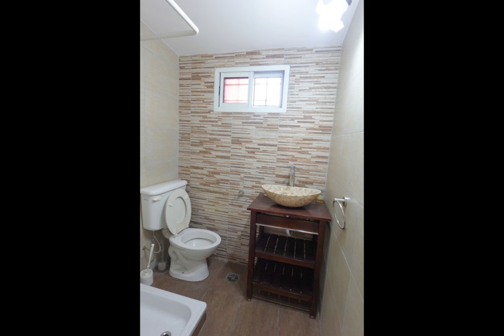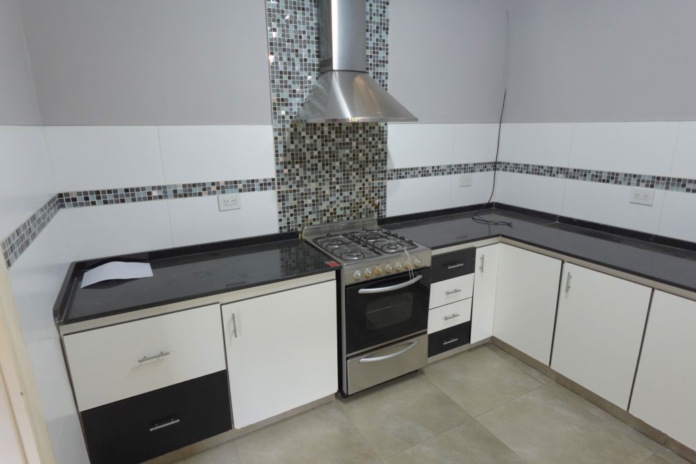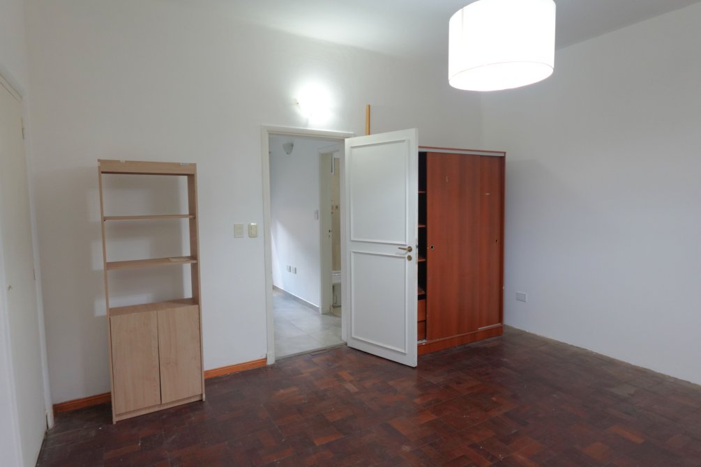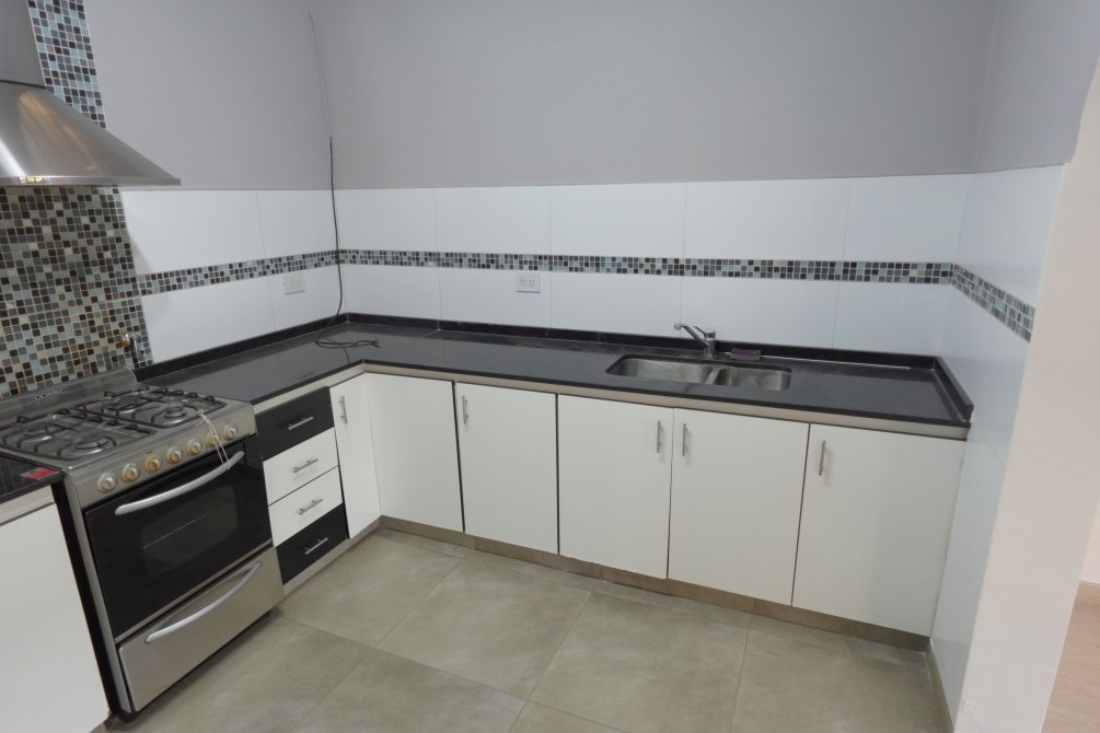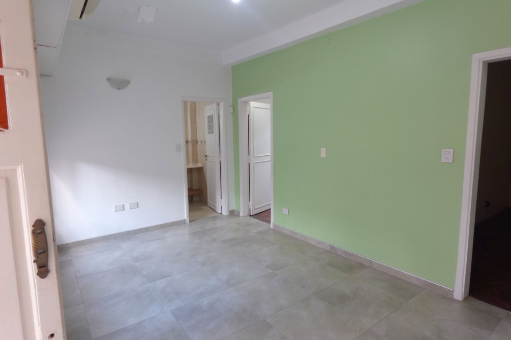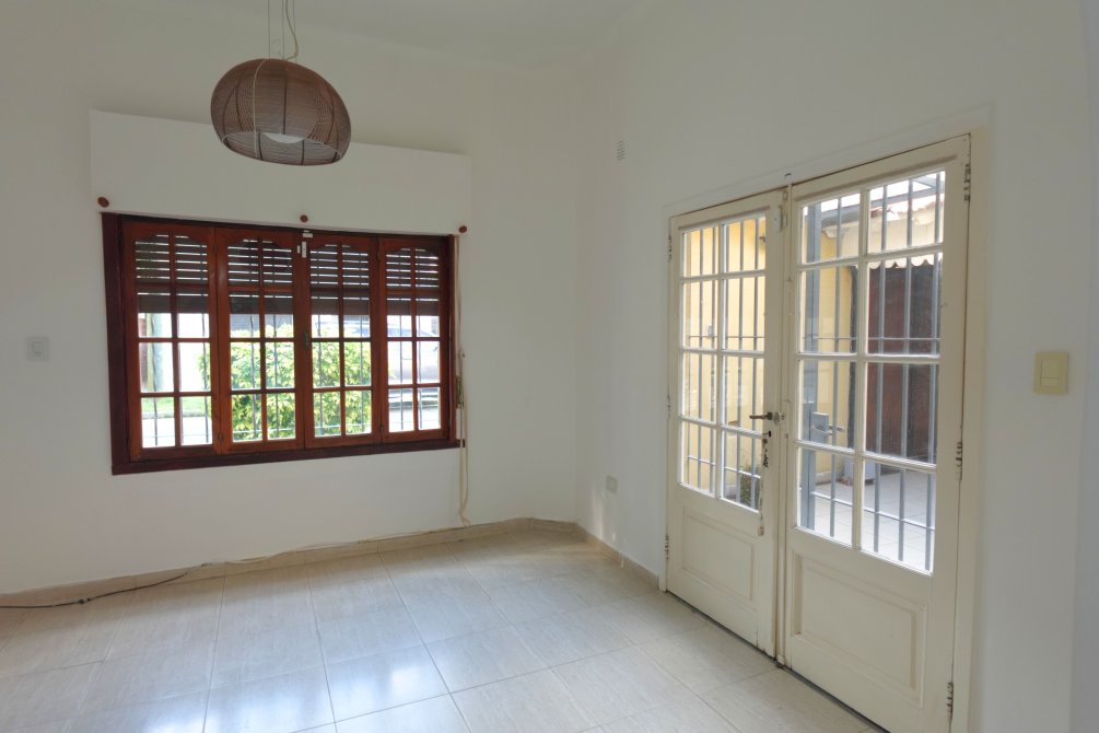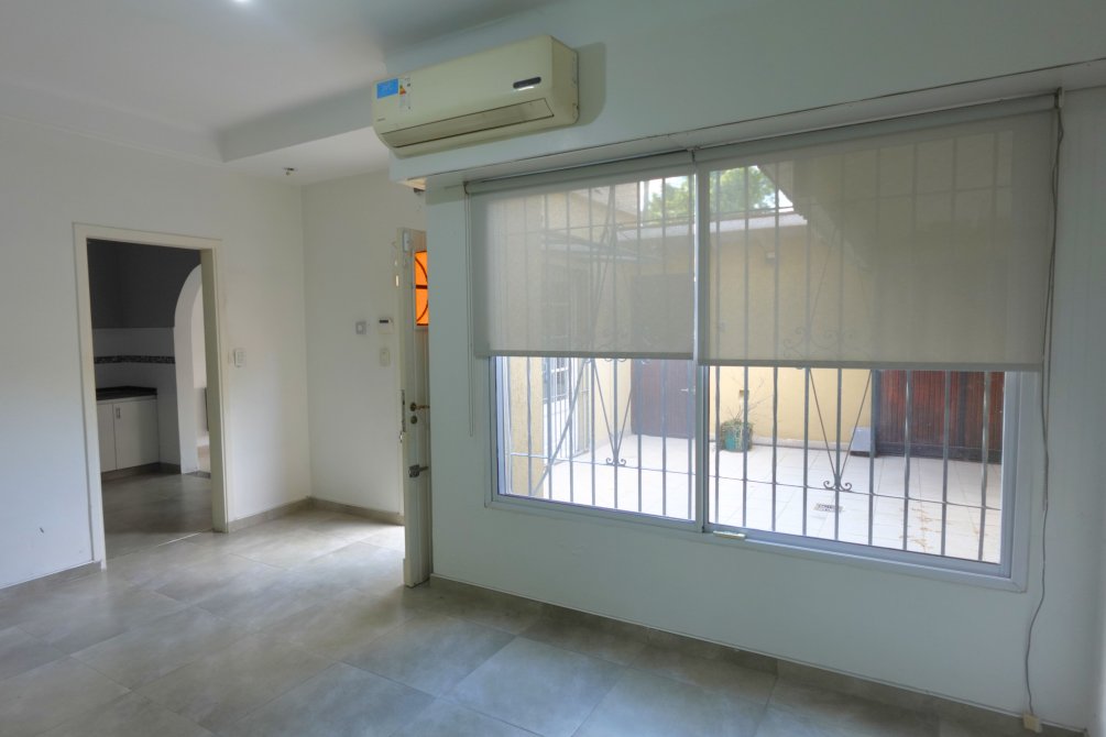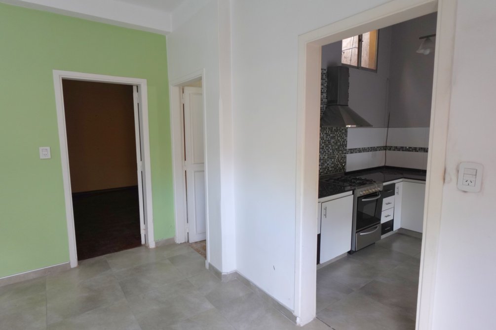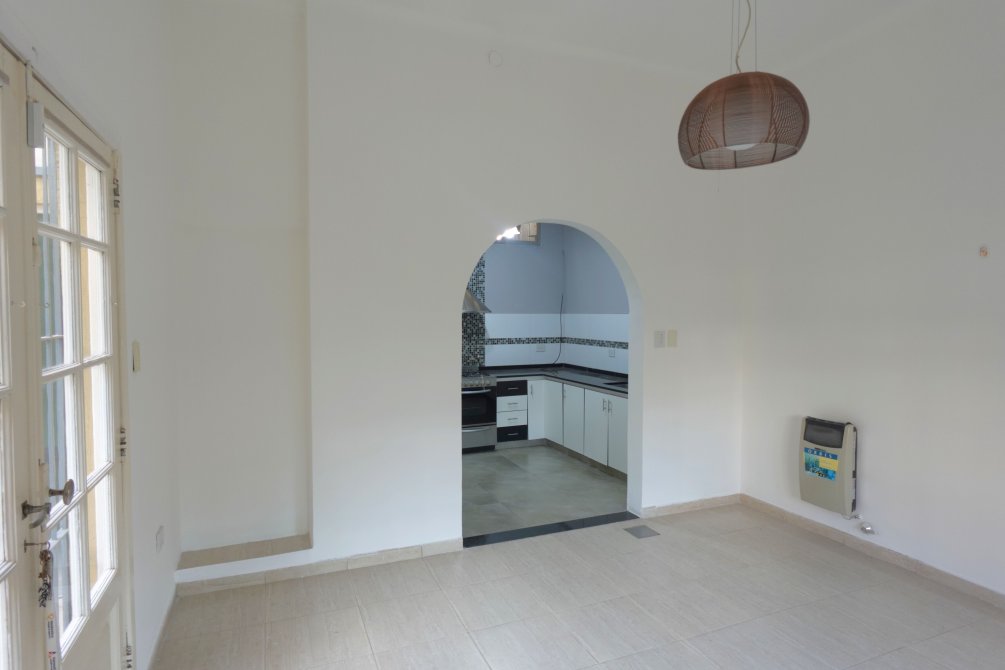 Pasando al interior de la propiedad, se encuentra un living de recepción que conecta a un baño completo con ducha, al dormitorio que se encuentra en planta baja con piso de parquet; por el otro lado del living se encuentra un lavadero y la cocina hecha a nueva con muebles bajo mesada, conectada al comedor que mira al frente con un ventanal que ventila al patio.
