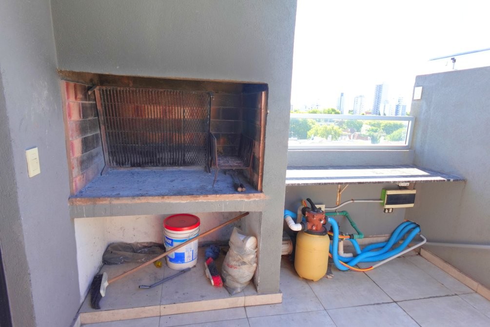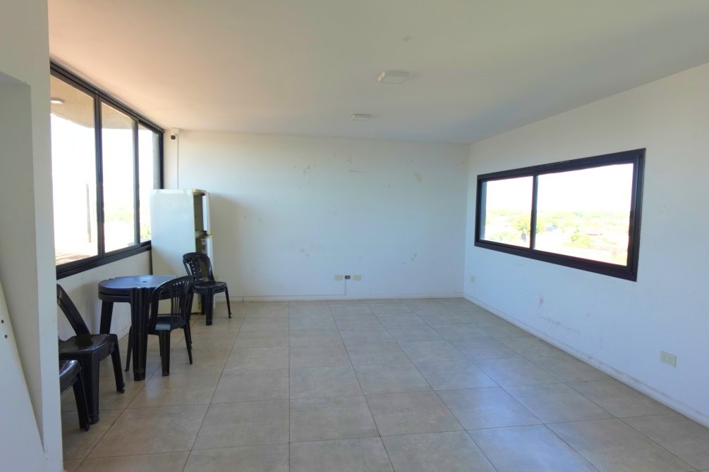 Subiendo al séptimo piso se accede al amplio zoom común para 20 personas aproximadas, ideal para un cumpleaños o reunión, con baño, parrilla y un zoom de madera que lleva a la piscina con acceso por rampa.