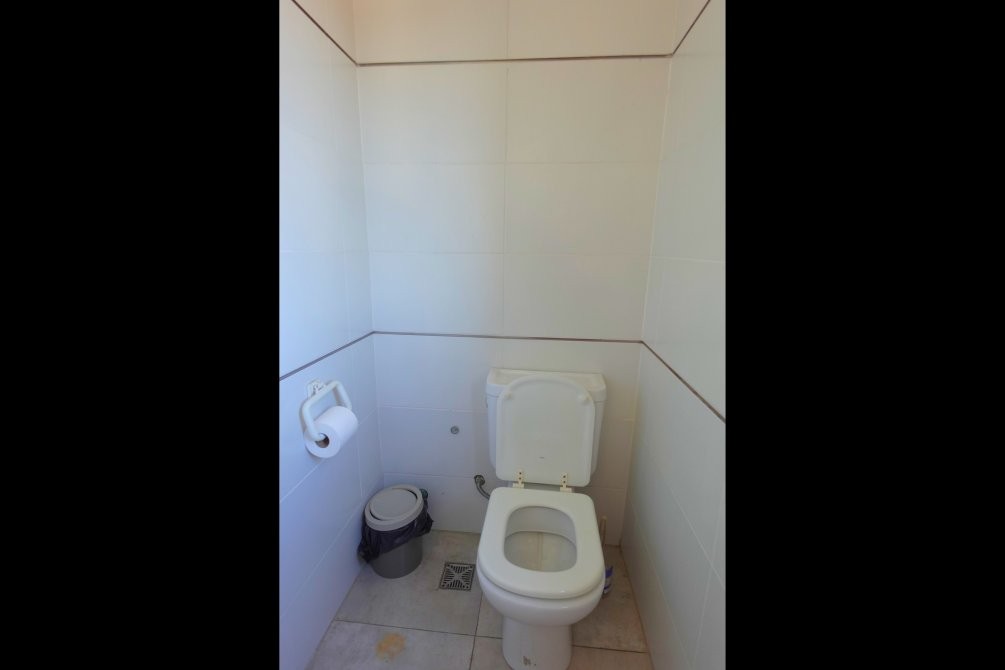 En el quinto piso, ingresamos a la unidad 5C, que cuenta con una gran cocina comedor con piso flotante y un ventanal con vista al contrafrente del edificio. La cocina cuenta con muebles bajo y alta mesada, calefon y cocina, ambas eléctricas.