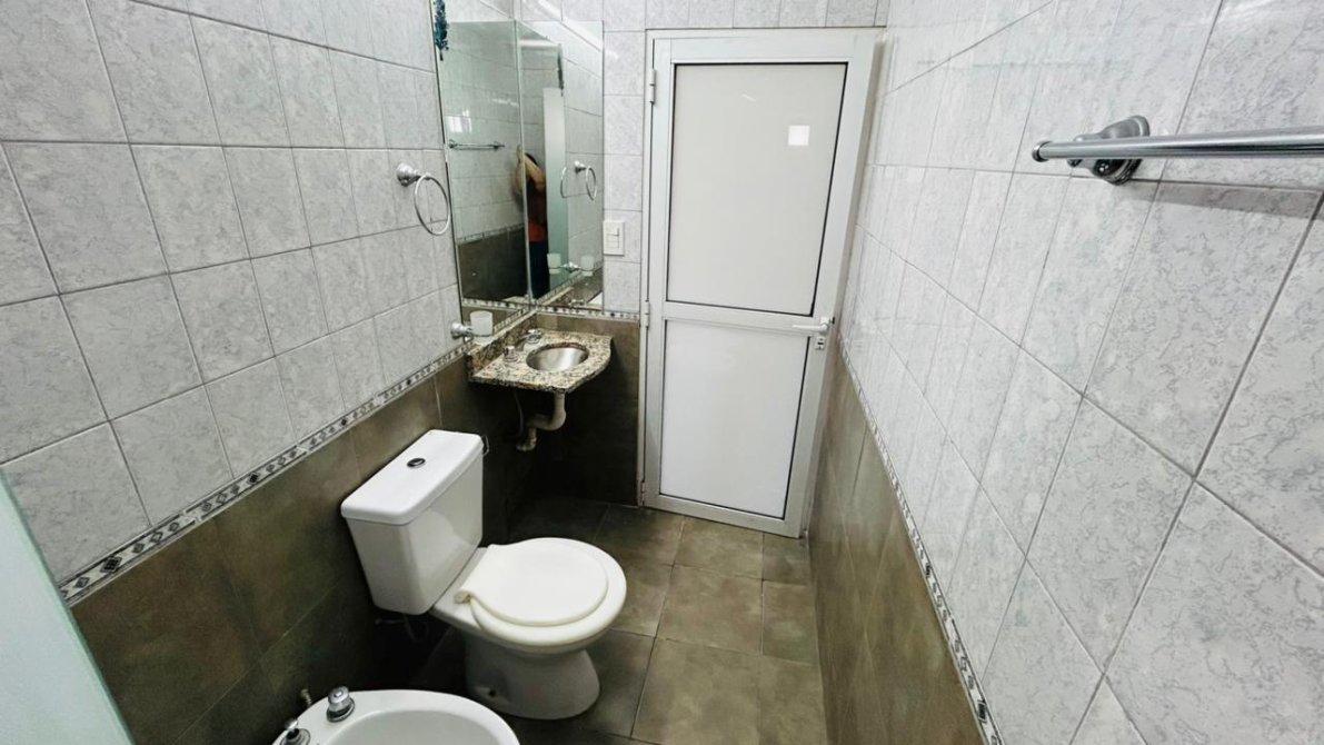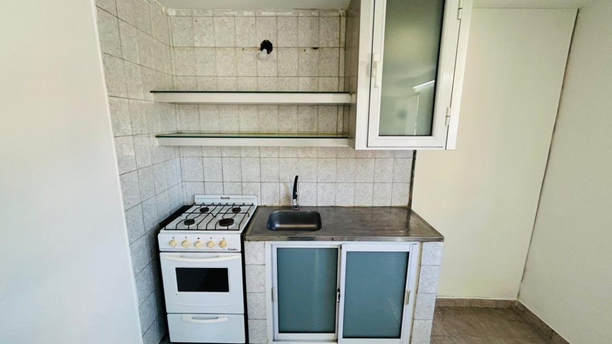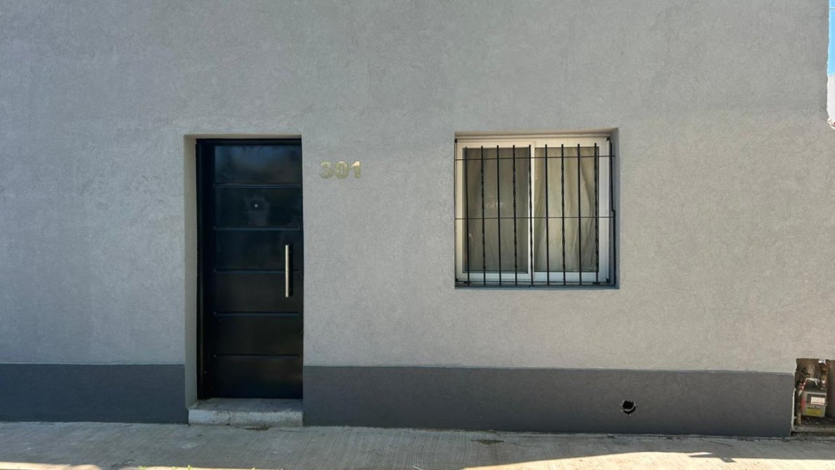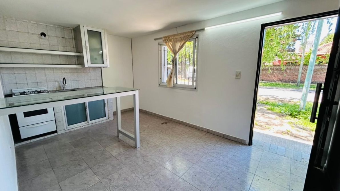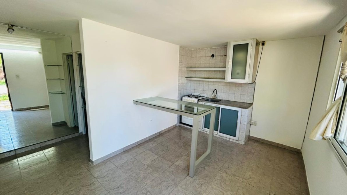 Departamento tipo casa de dos ambientes con cocina, dormitorio y baño.