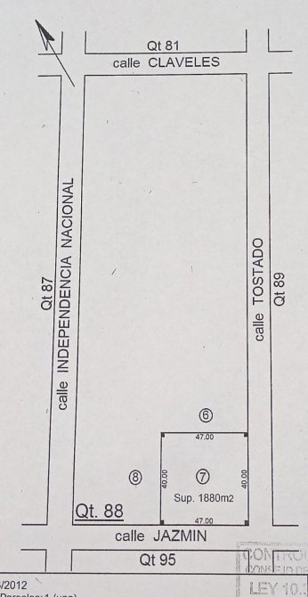 Gran lote de 1880mts2 en esquina, con medidas de 47mts por calle Jazmin, y 40mts por calle Tostado.