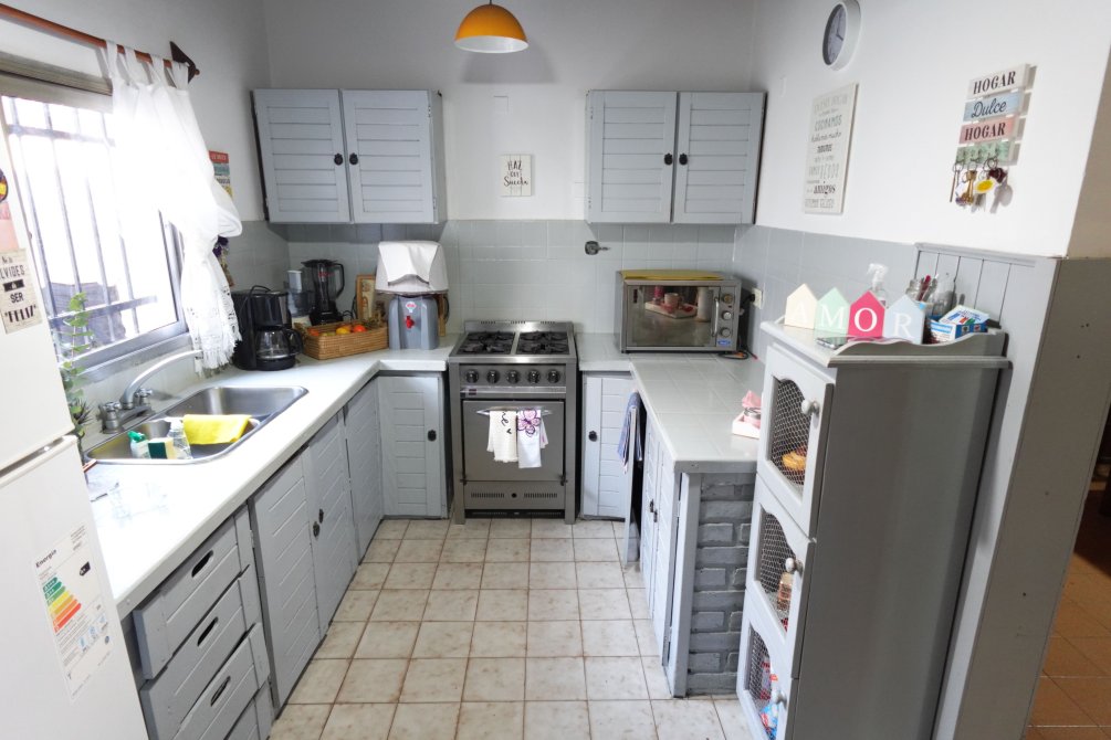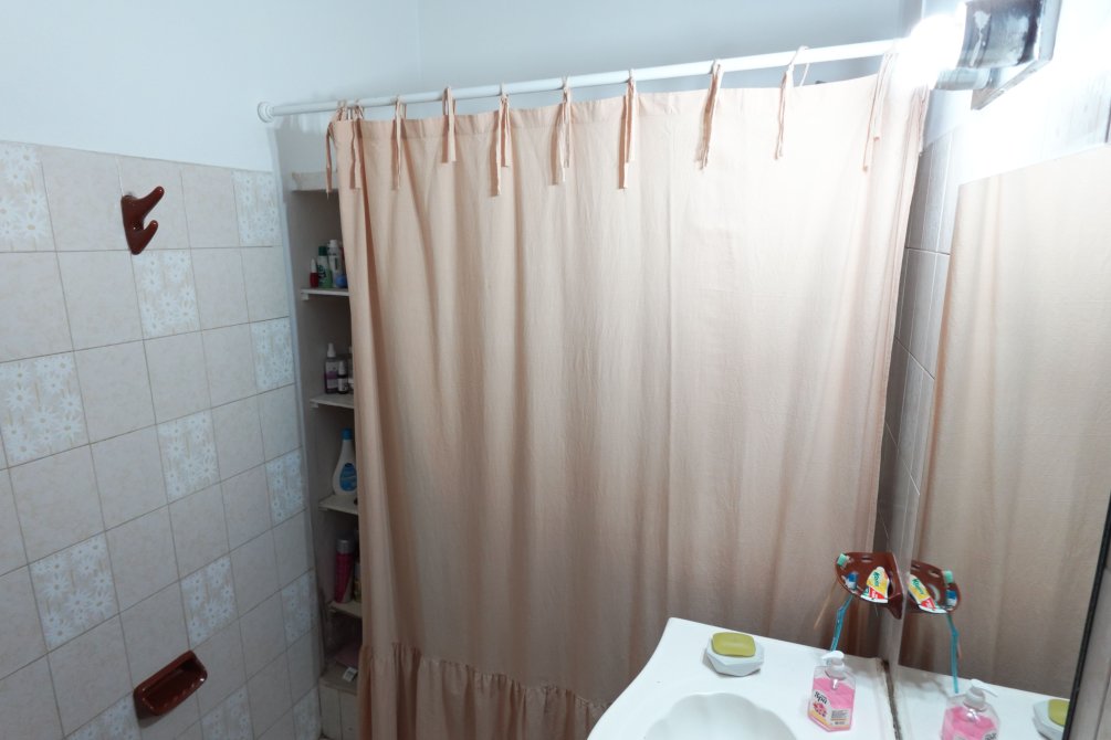 Ingresamos por el living comedor, conectado a un baño de recepción completo y a la cocina hecha a nueva con muebles alto y bajo mesada.