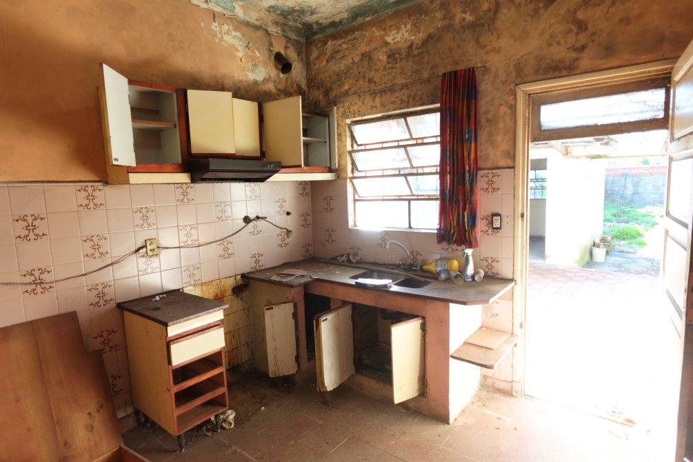 Casa a reciclar con un lote de 8,66m por 32m, con techo de losa y pasillo pasante al jardín trasero.