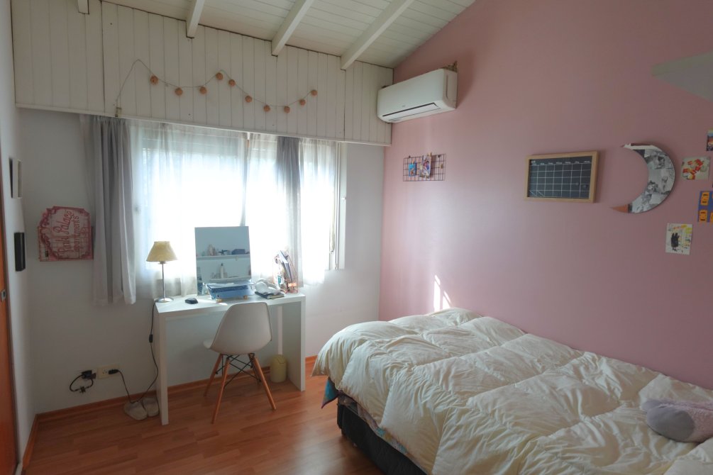 En planta alta se encuentran los 3 dormitorios con placard y piso de parquet con ventanas hacía el jardín trasero; baño completo con bañera, un cuartito que se puede utilizar como vestidor y la escalera con una doble altura.