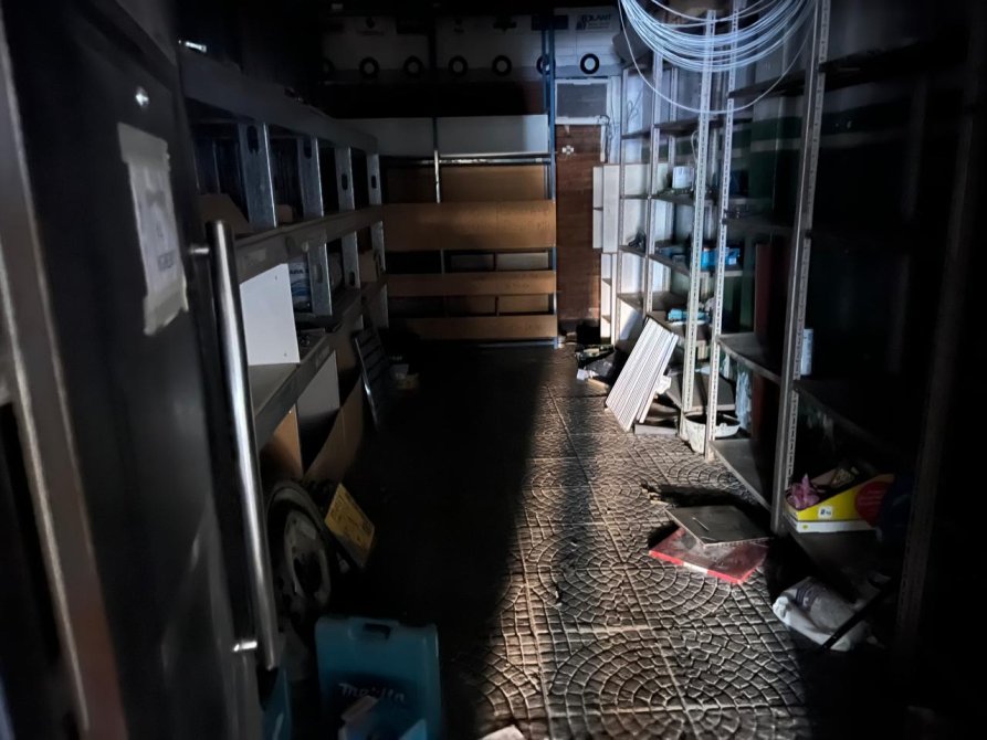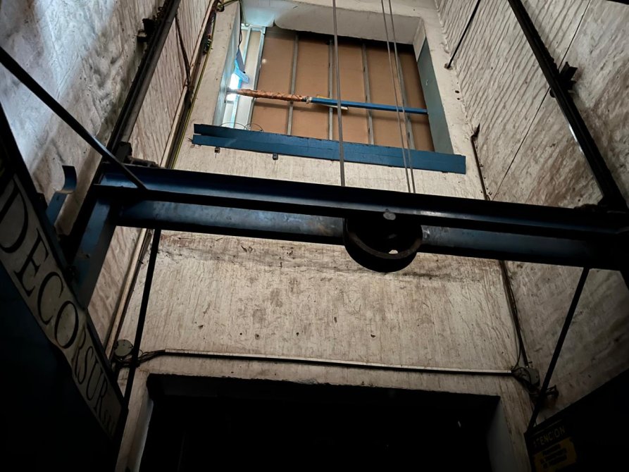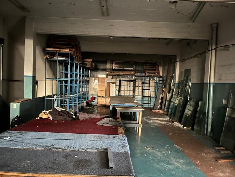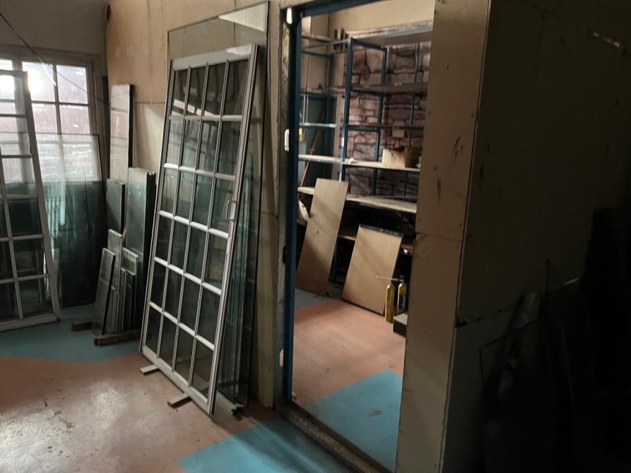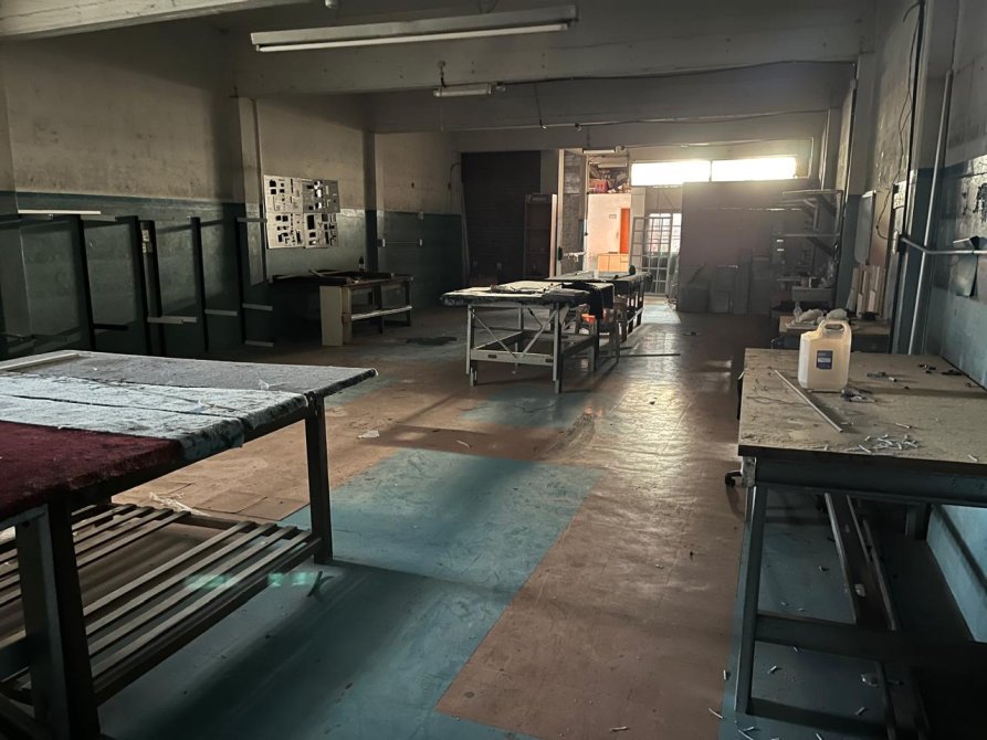 Local de 8,66 x 43, de losa con doble altura, con montacarga, oficinas, y baño.