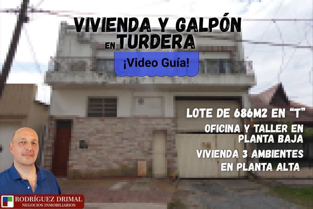 Amplio departamento en Turdera con 3 dormitorios y un taller de trabajo, Lote en "T" de 686m2.