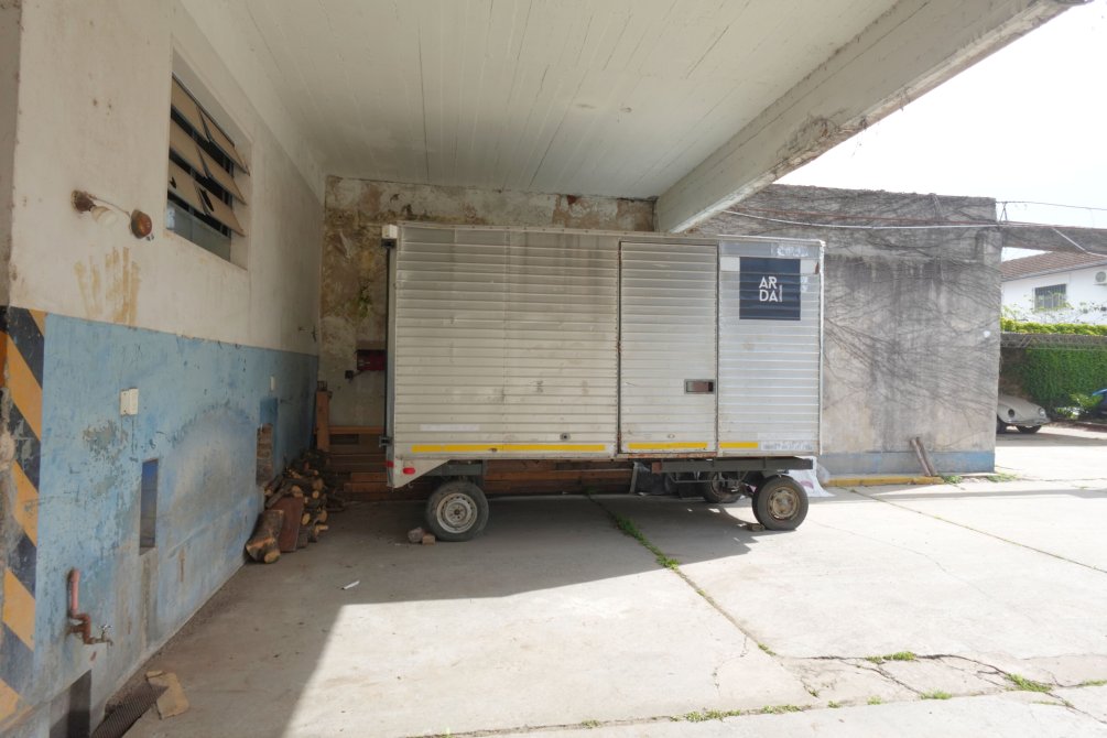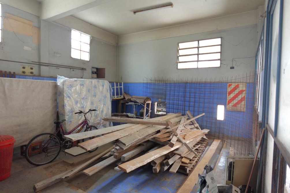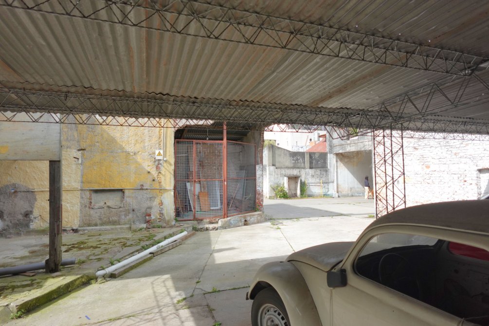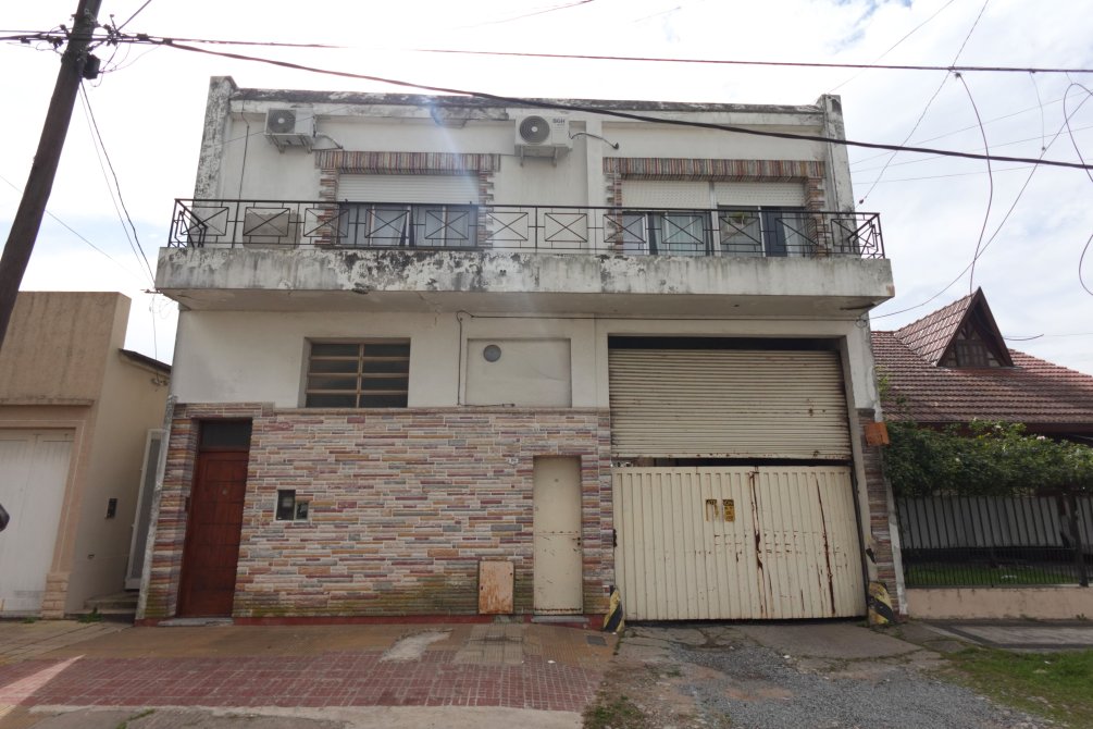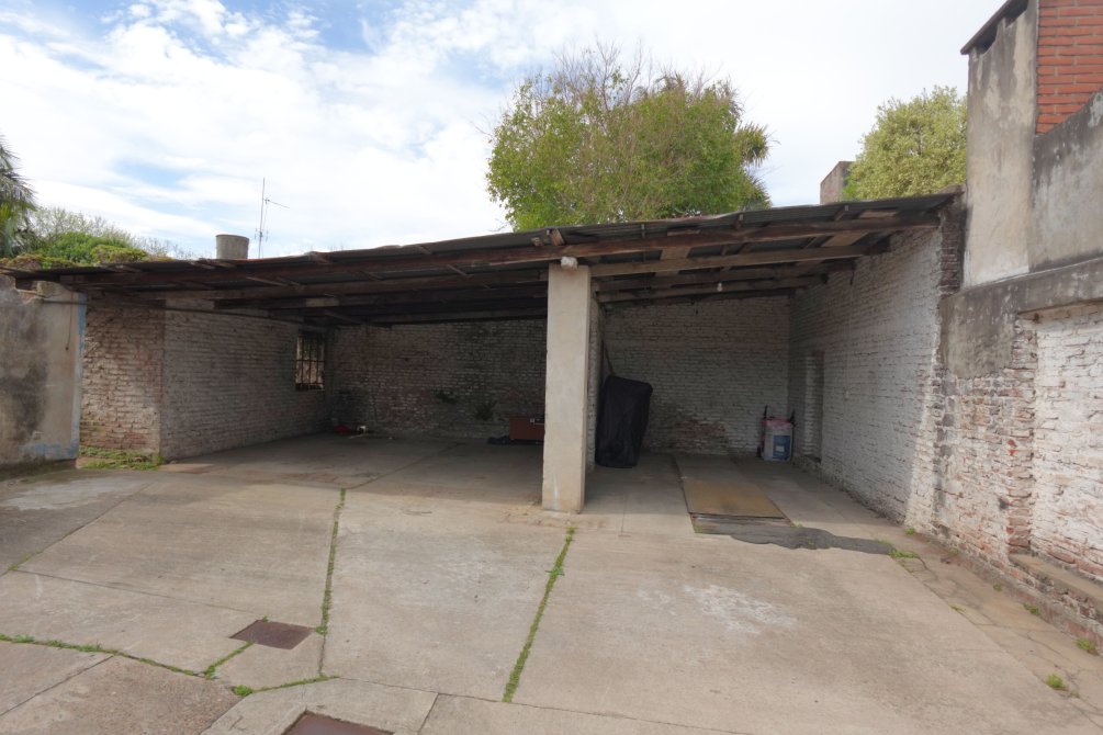 Ingresando a la propiedad por el taller, se encuentra una oficina con baño, el sector del taller de trabajo donde funcionó una sodería. Por el portón y cochera pasante accedemos al fondo del lote, con dos alas que forman la "T" del terreno, con espacios semicubiertos para vehículos y una construcción a terminar.