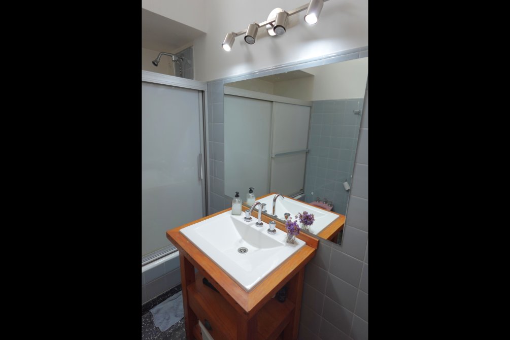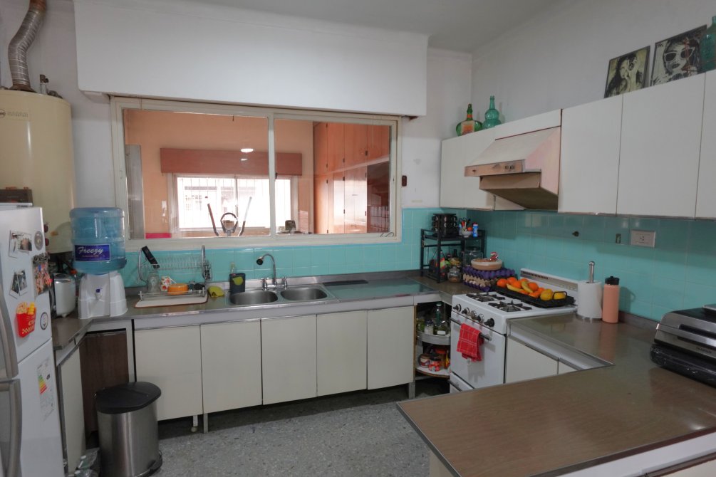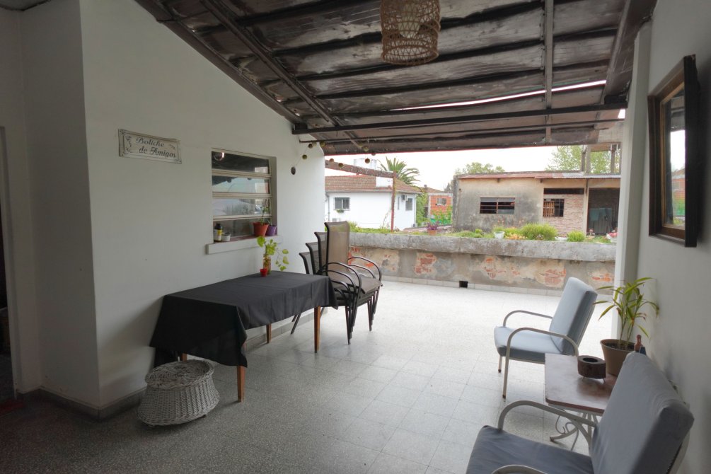 Saliendo hacía la terraza del fondo del departamento, se encuentran un espacio semicubierto que conecta al lavadero y al dormitorio de servicio. La terraza cuenta con parrilla y tiene vista a todo el lote del taller de trabajo.