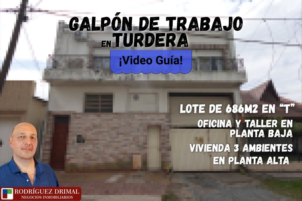 GALPÓN EN TURDERA CON TALLER Y OFICINA DE TRABAJO, LOTE DE 686 m2 y una vivienda 4 ambientes en planta alta.
