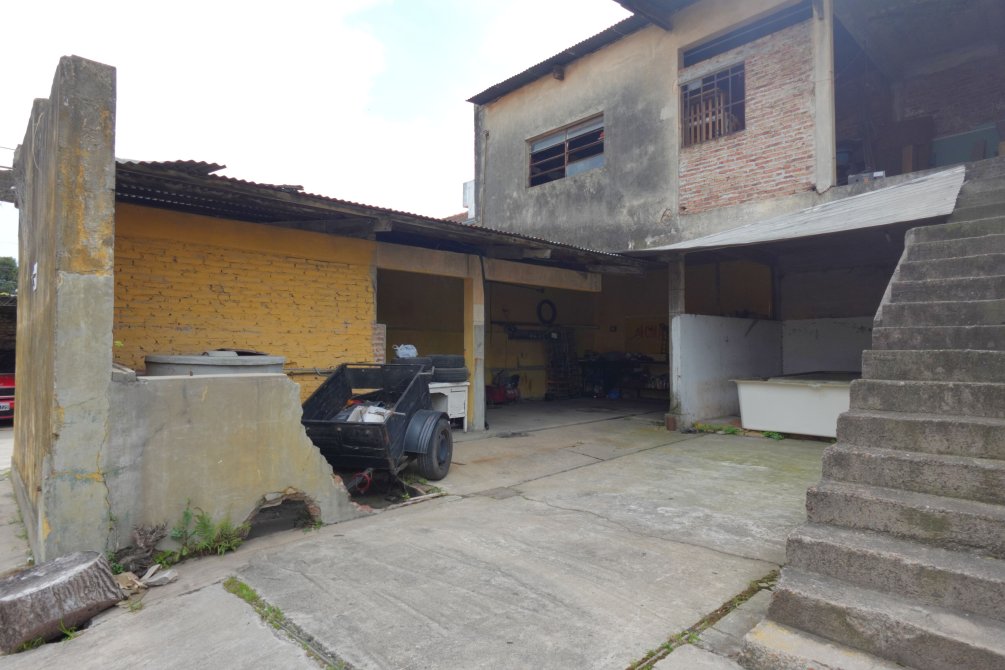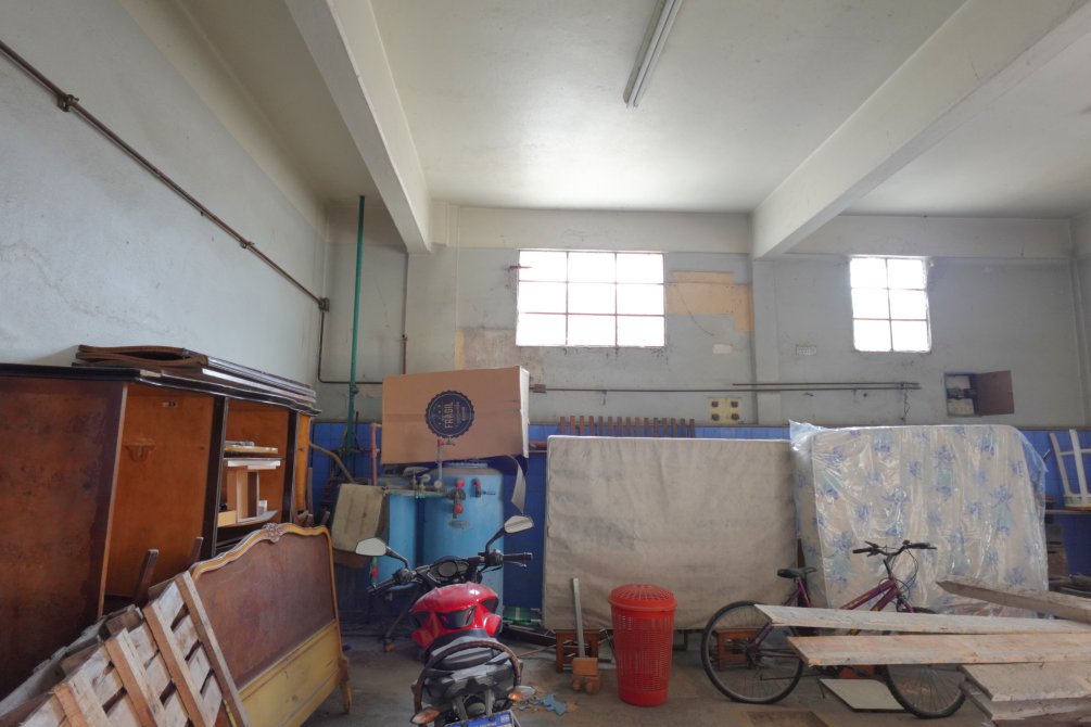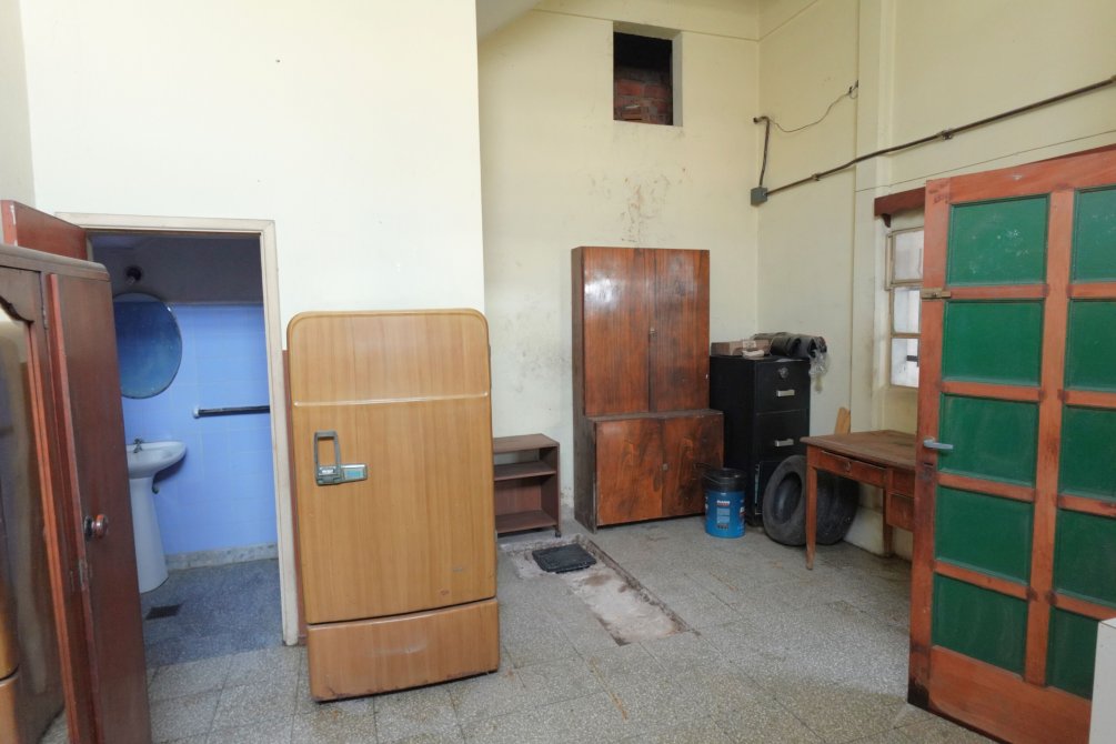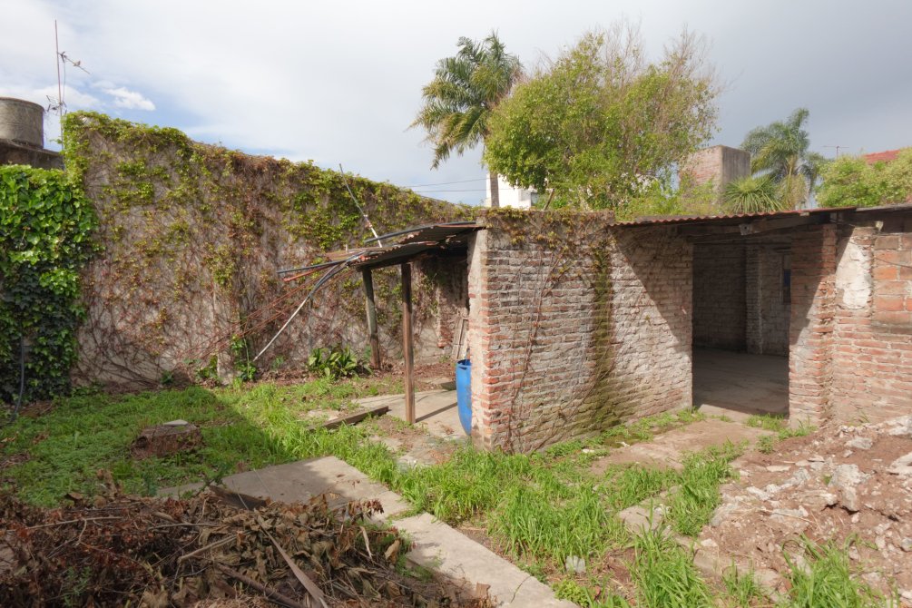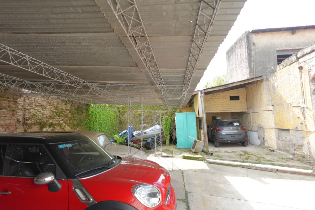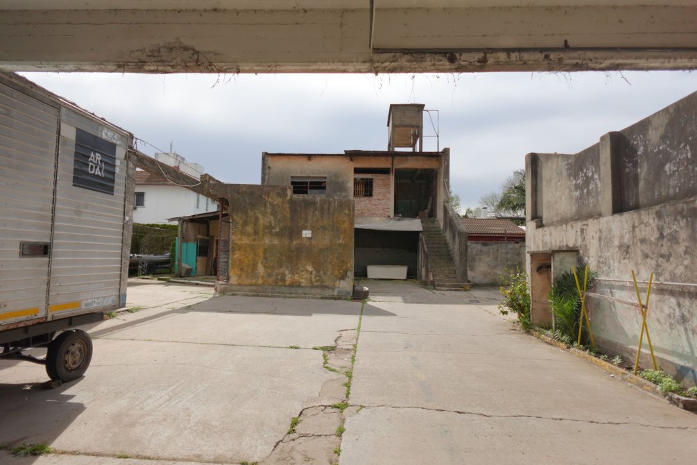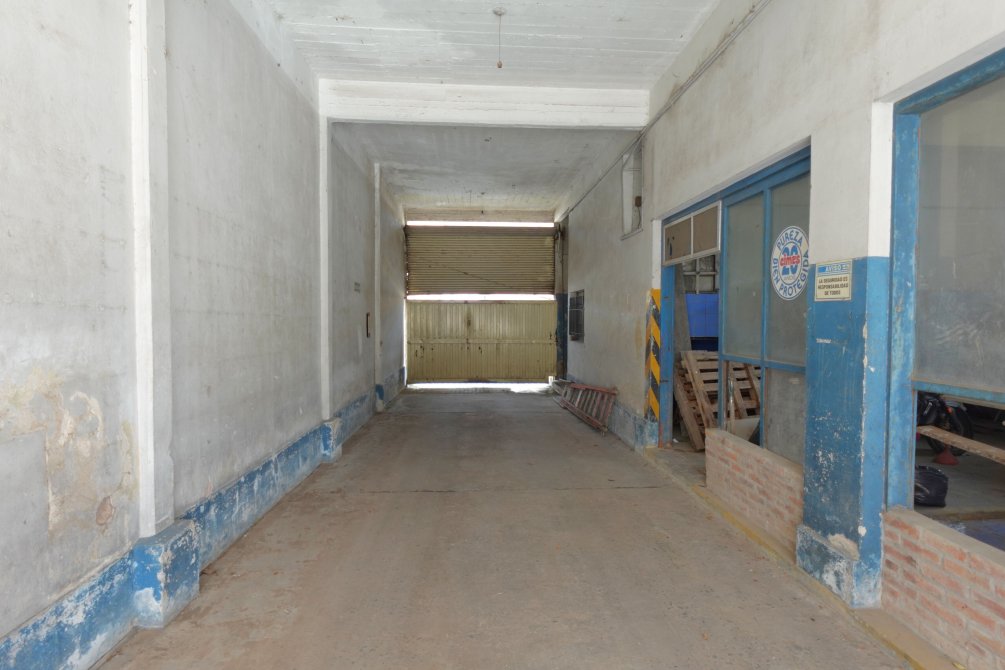 Ingresando al taller se encuentra una oficina con baño y el sector del taller de trabajo donde funcionaba una sodería. Por el portón y cochera pasante accedemos al fondo del lote, con dos alas que forman la "T" del terreno, con espacios semicubiertos para vehículos y una construcción a terminar de dos plantas que cuenta con un taller mecánico.