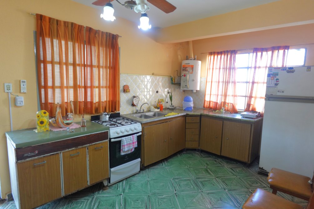 Por el lado principal, accedemos a la cocina con muebles bajo mesada que ventila hacía la escalera; y conecta al baño y las dos habitaciones principales, una que ventila a la escalera, y la segunda habitación que ventila a la calle.