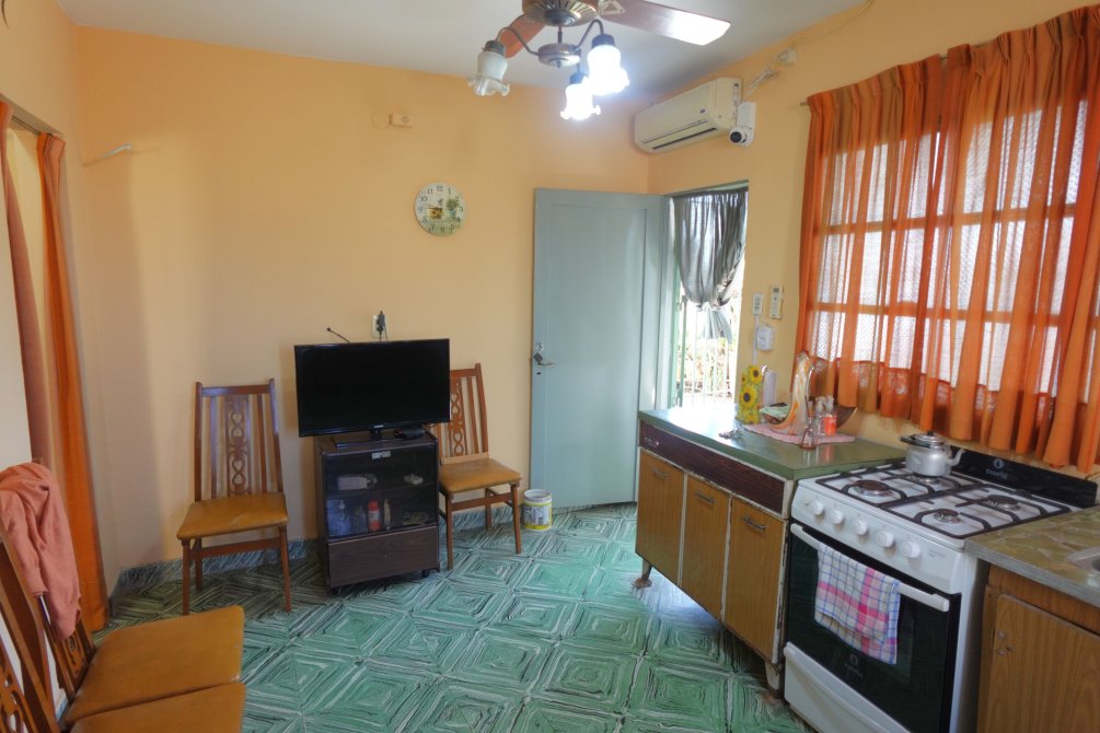 Saliendo al patio cubierto se accede a los dos ambientes que quedaron separados del principal. Por un lado tenemos el tercer dormitorio y del otro lado tenemos un comedor separado.